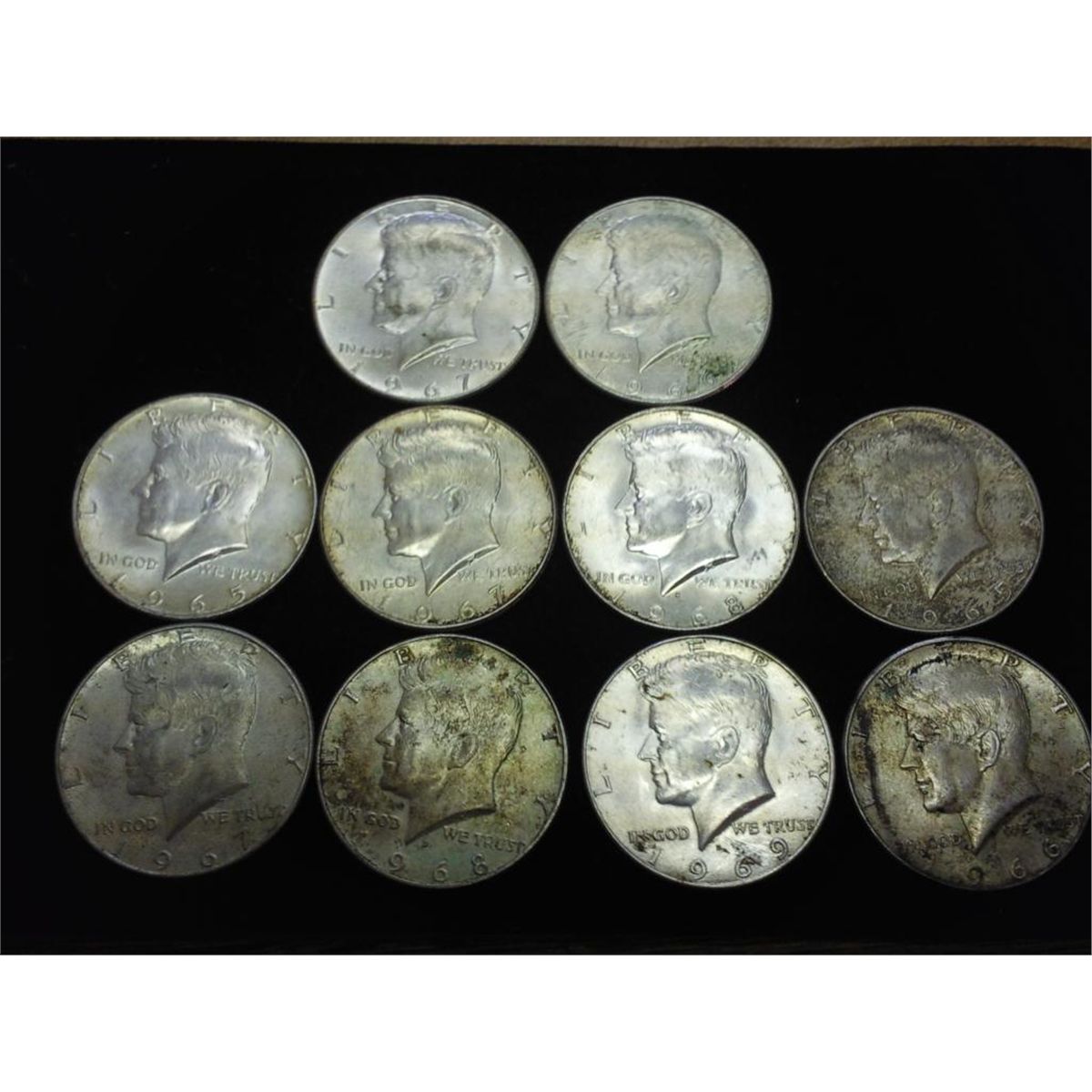 10 ASSORTED 40% SILVER KENNEDY HALF DOLLARS