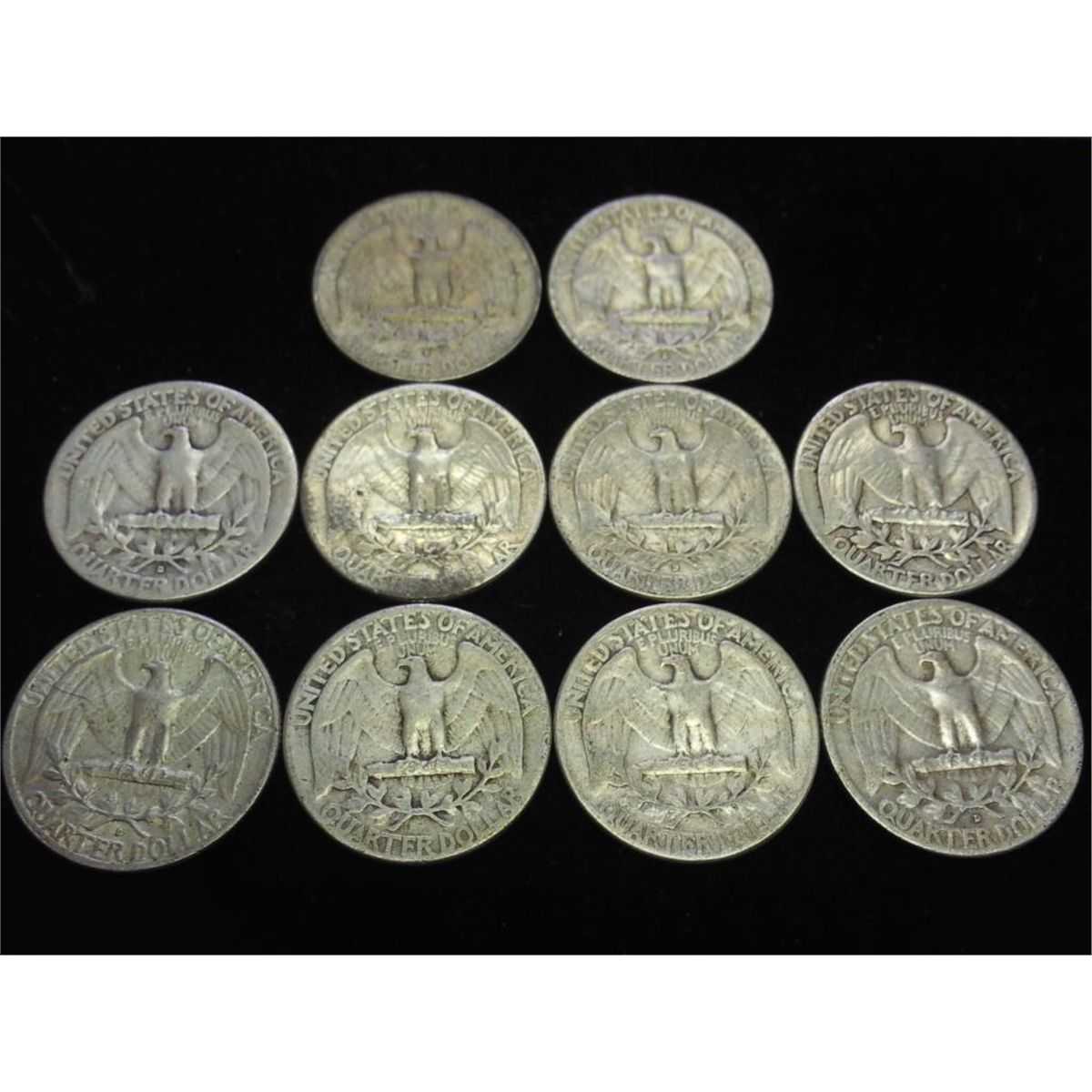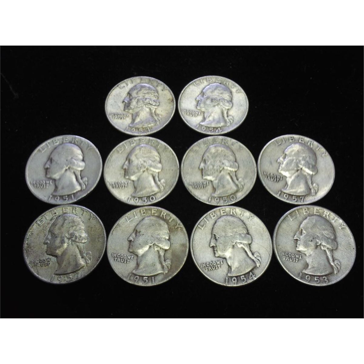 10 ASSORTED 50'S WASHINGTON SILVER QUARTERS