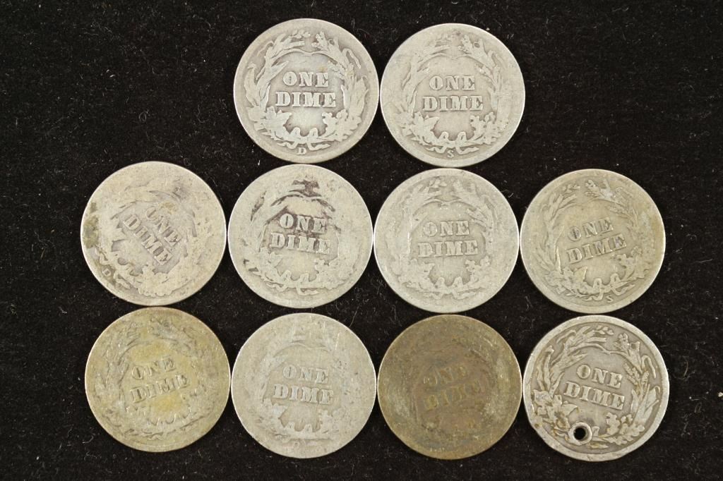 10 ASSORTED BARBER DIMES 1 HOLED