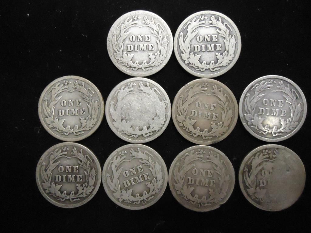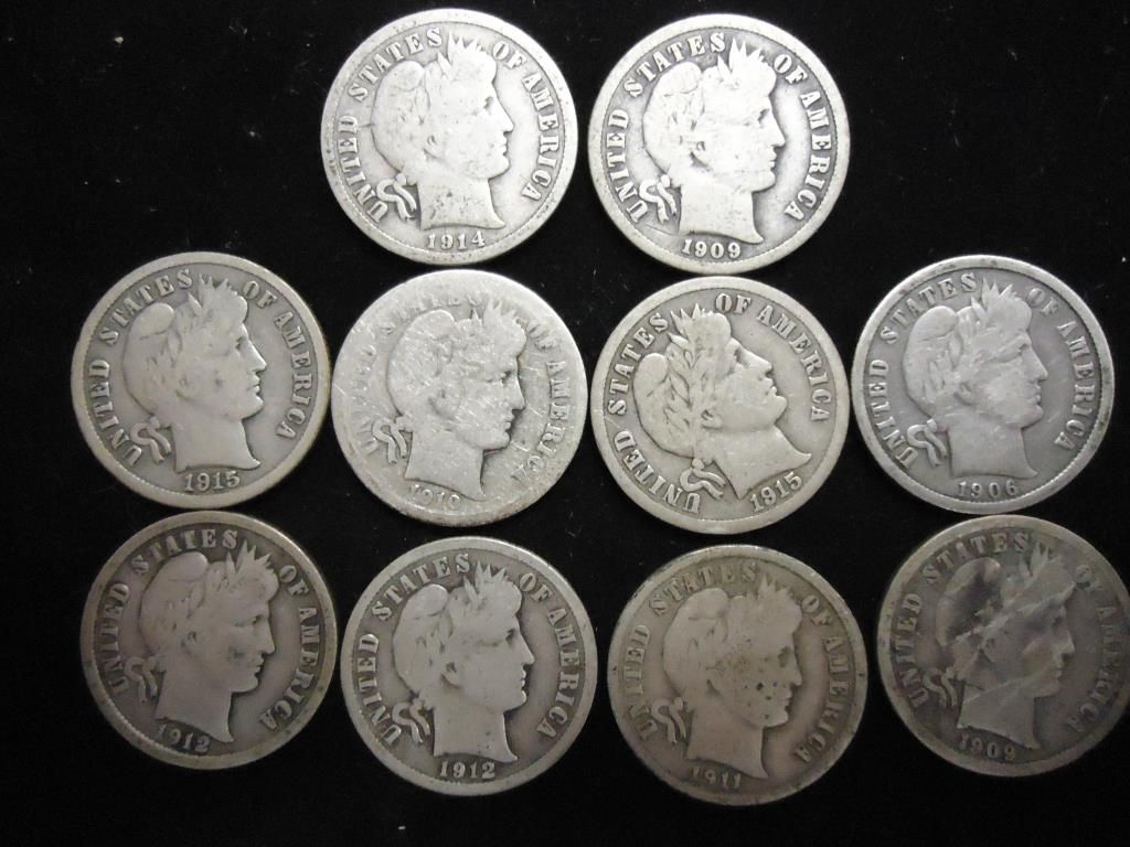 10 ASSORTED BARBER DIMES