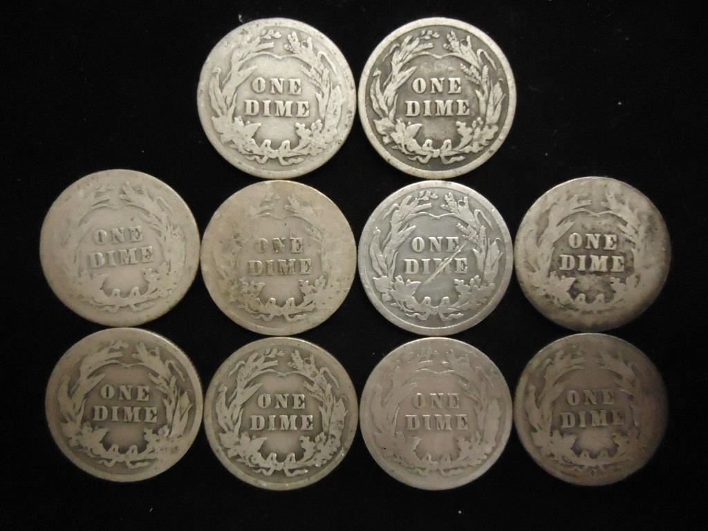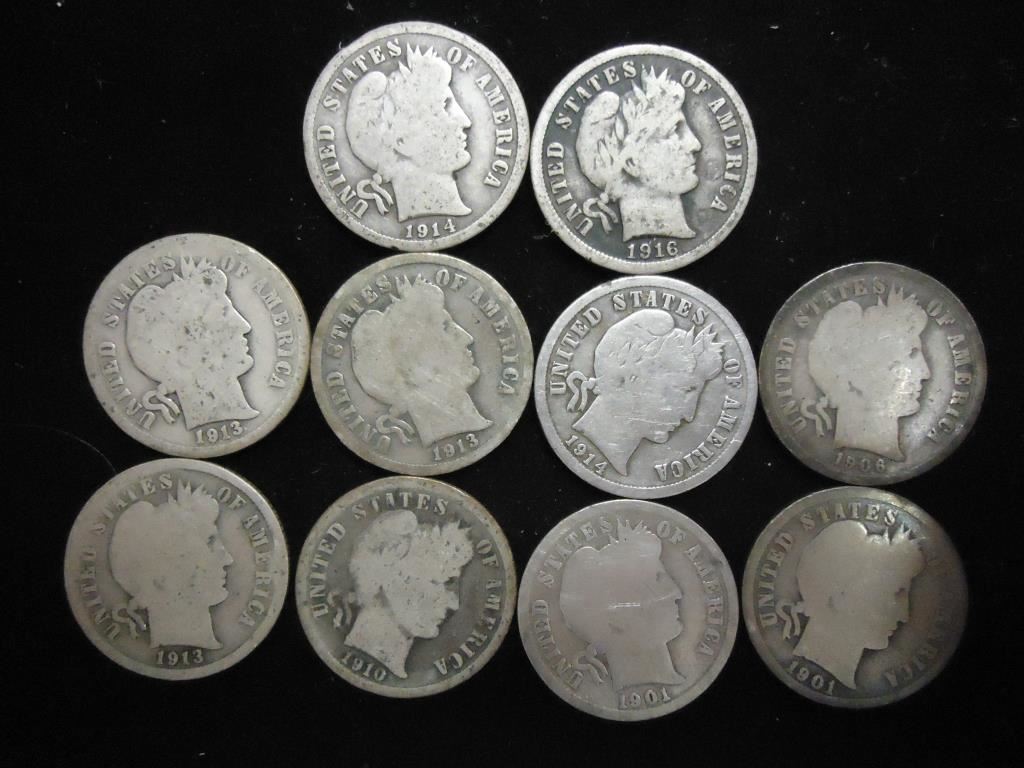 10 ASSORTED BARBER DIMES