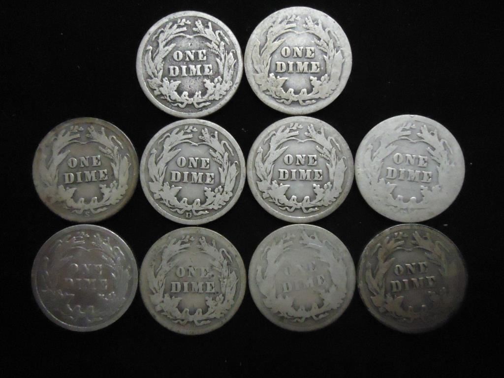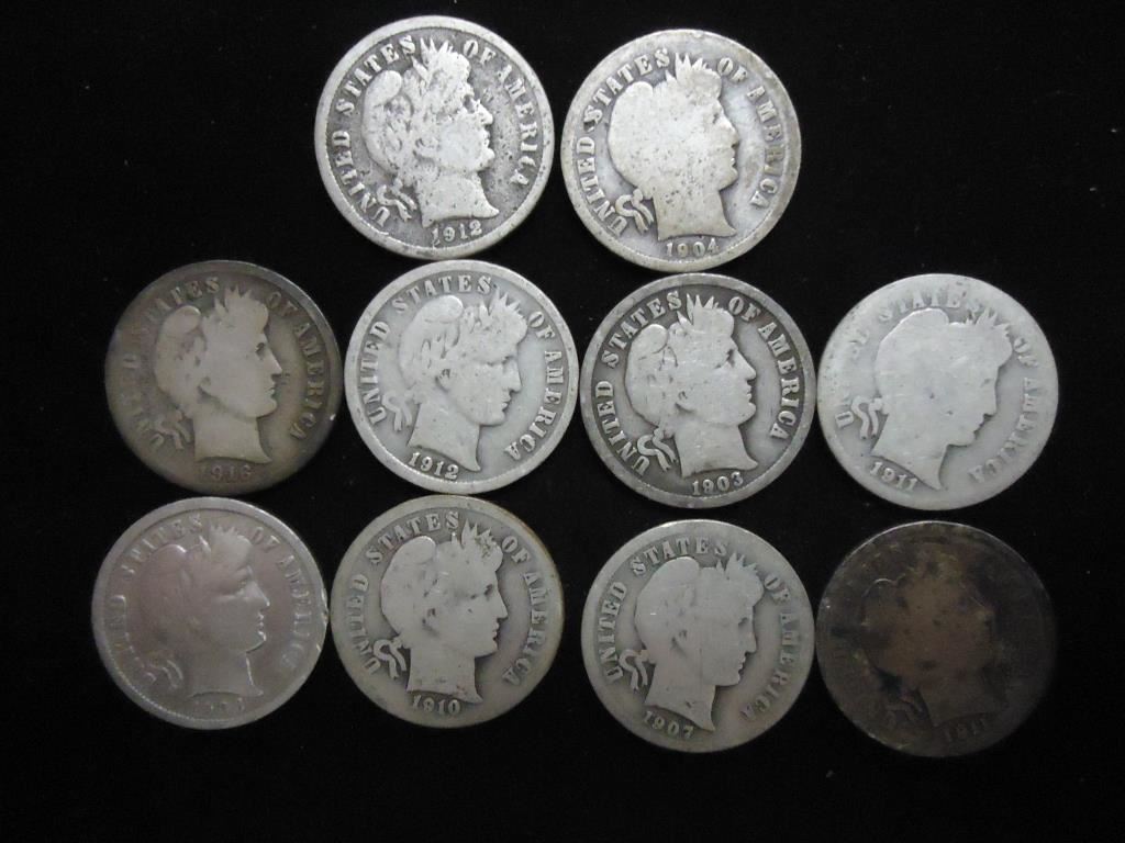 10 ASSORTED BARBER DIMES