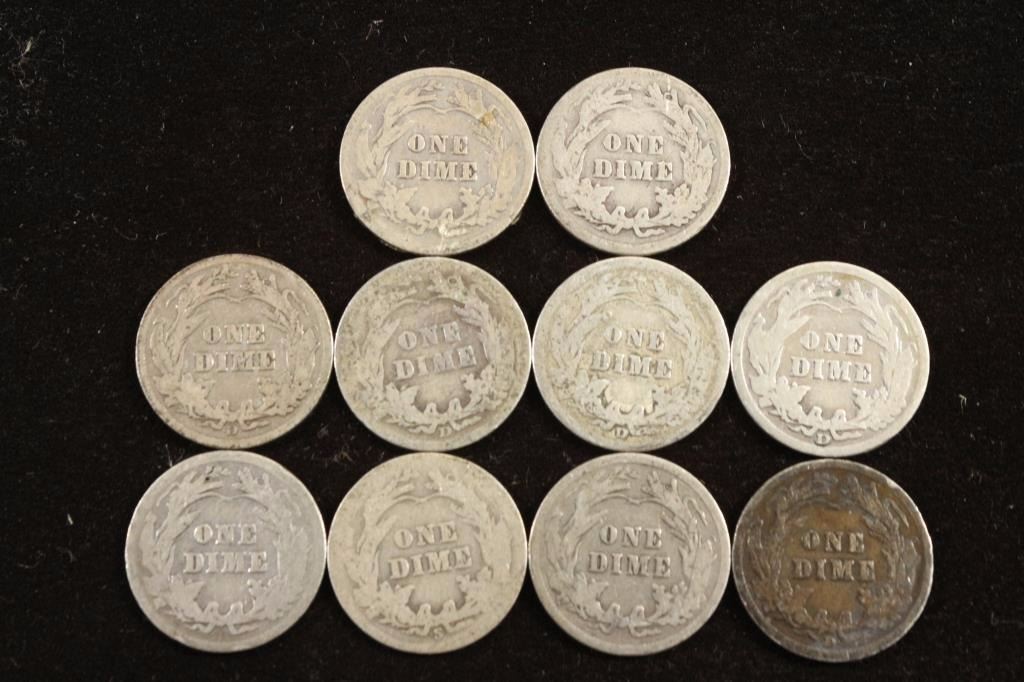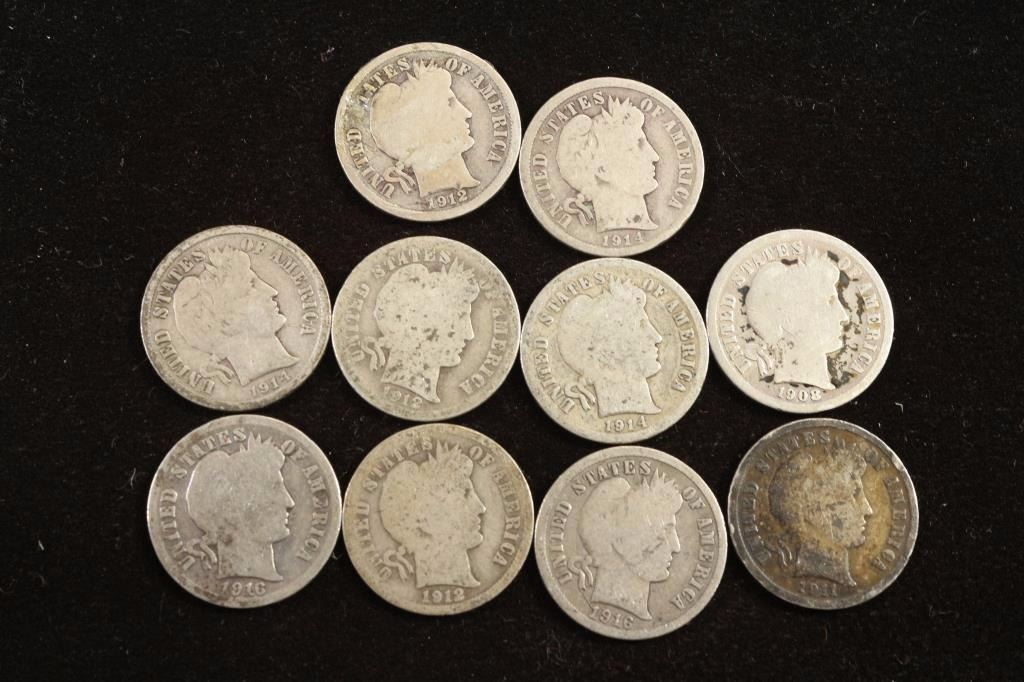 10 ASSORTED BARBER DIMES
