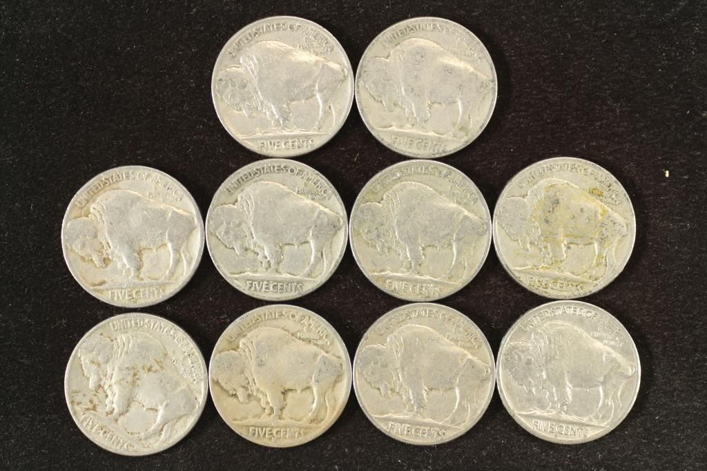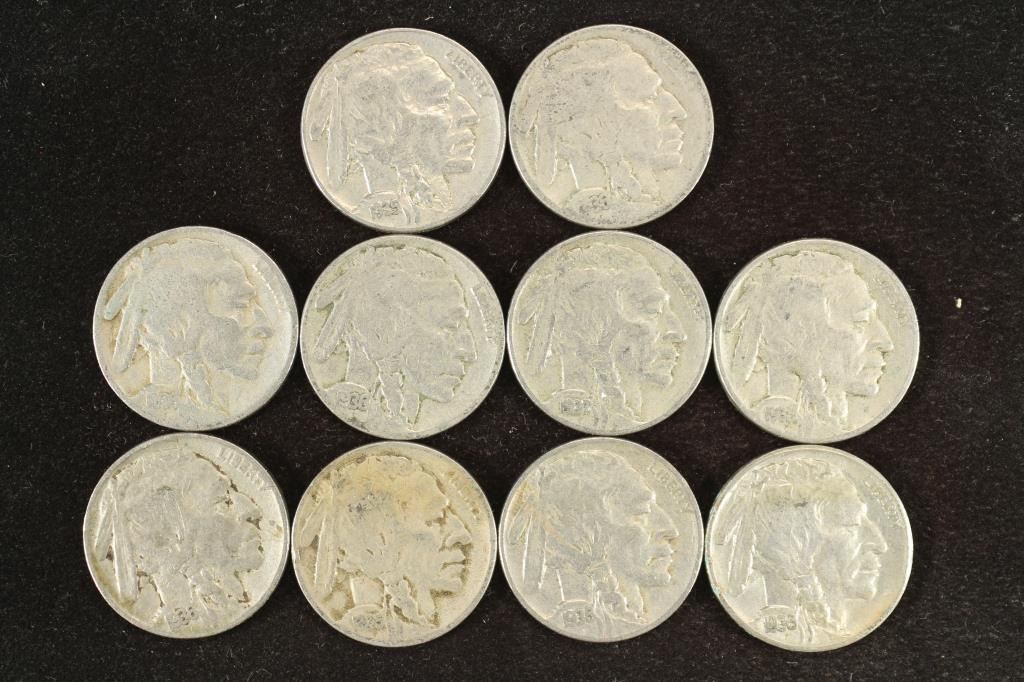 10 ASSORTED FULL DATE 1930'S BUFFALO NICKELS