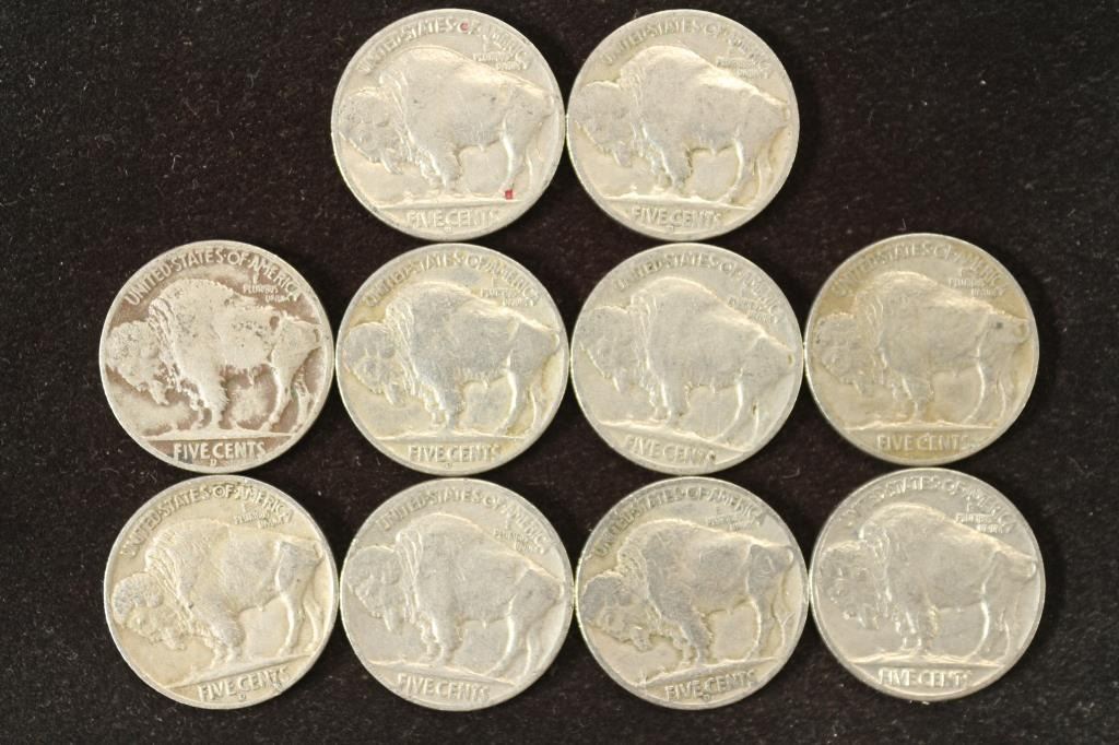 10 ASSORTED FULL DATE 1930'S BUFFALO NICKELS