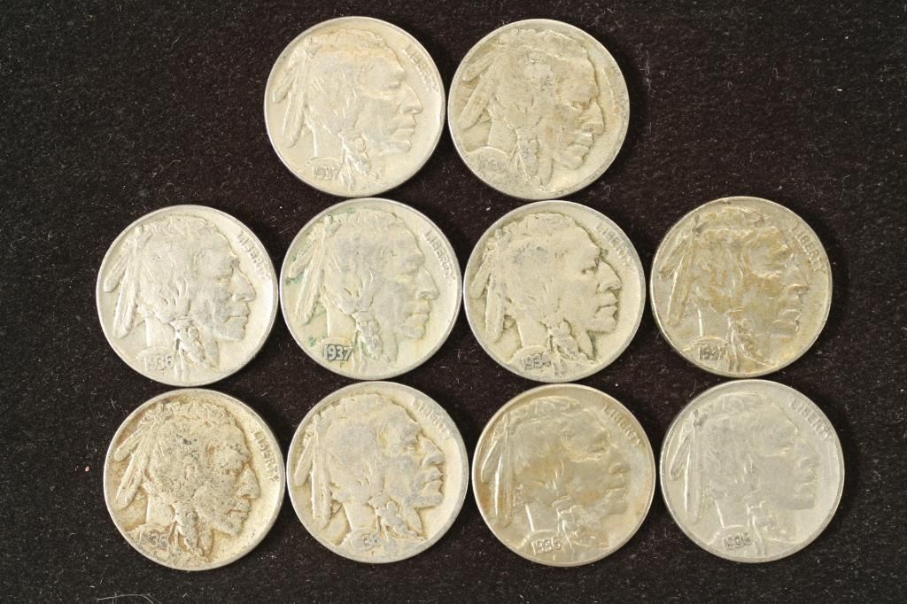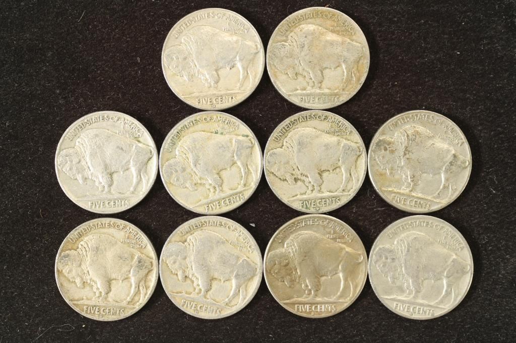 10 ASSORTED FULL DATE 1930'S BUFFALO NICKELS