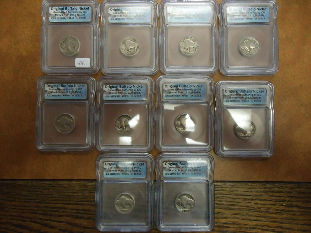 10 ASSORTED ICG BUFFALO NICKEL SLABS