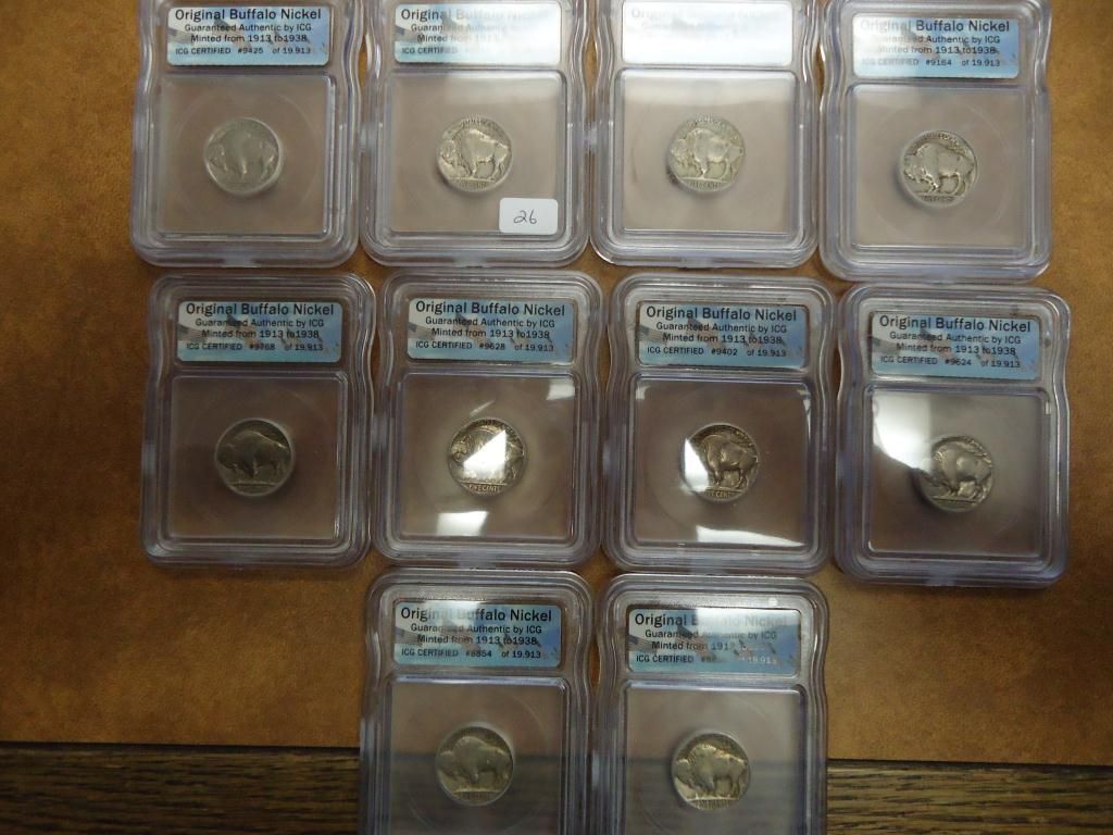 10 ASSORTED ICG BUFFALO NICKEL SLABS