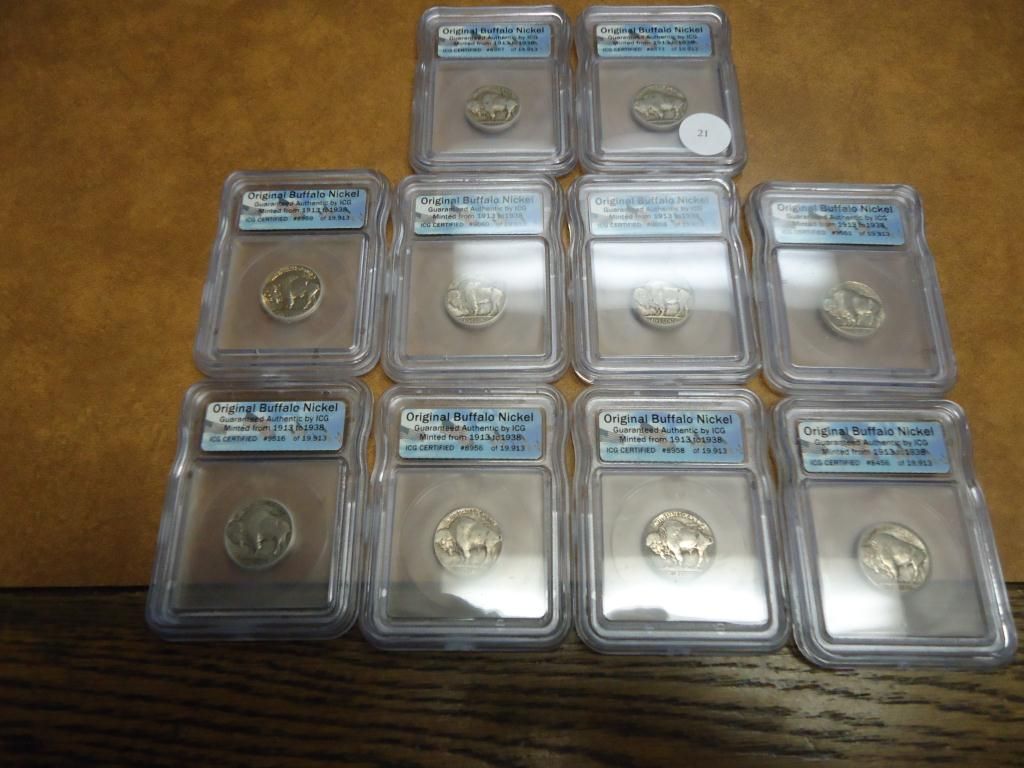 10 ASSORTED ICG BUFFALO NICKEL SLABS