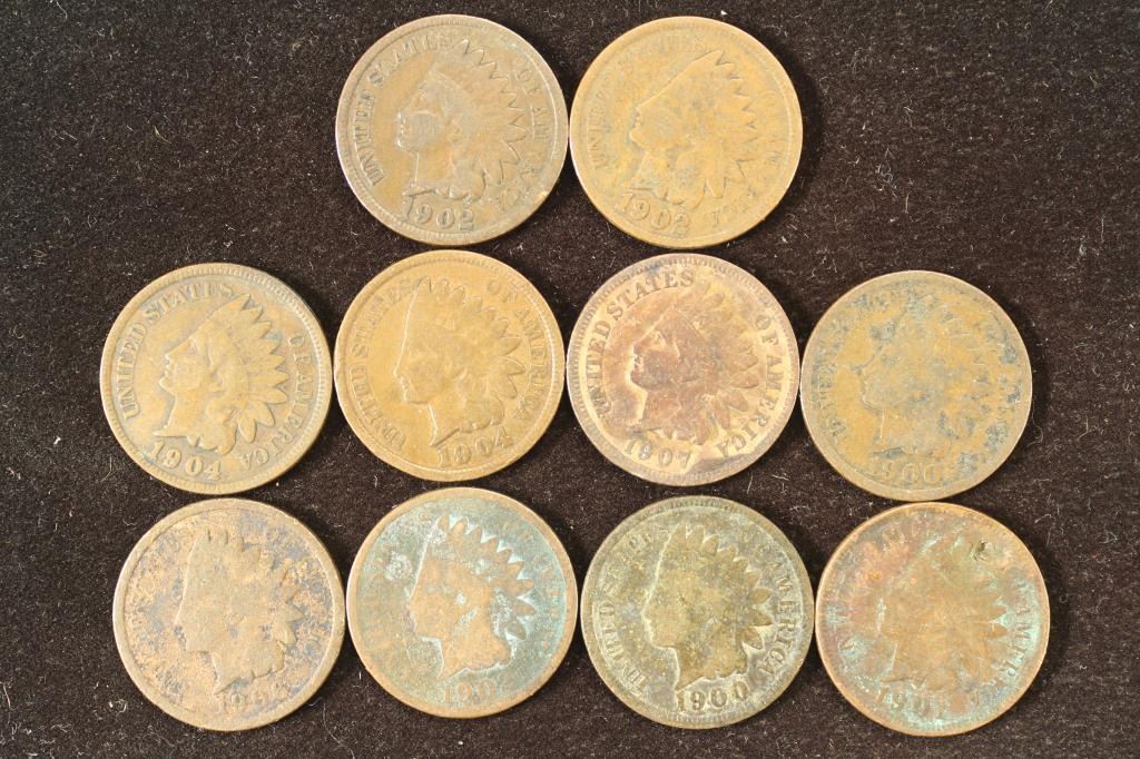 10 ASSORTED INDIAN HEAD CENTS 1900'S