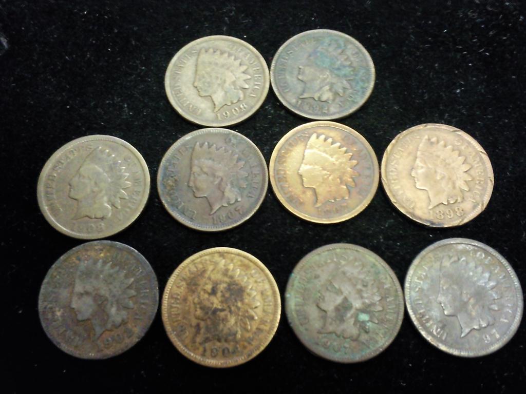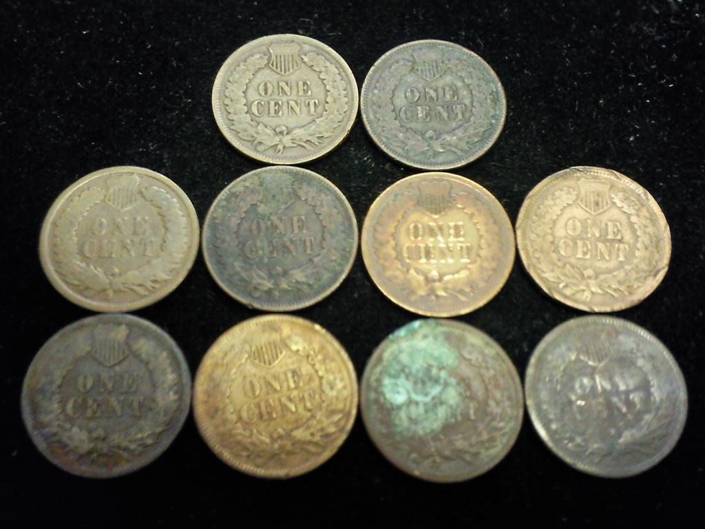 10 ASSORTED INDIAN HEAD CENTS (AS SHOWN)
