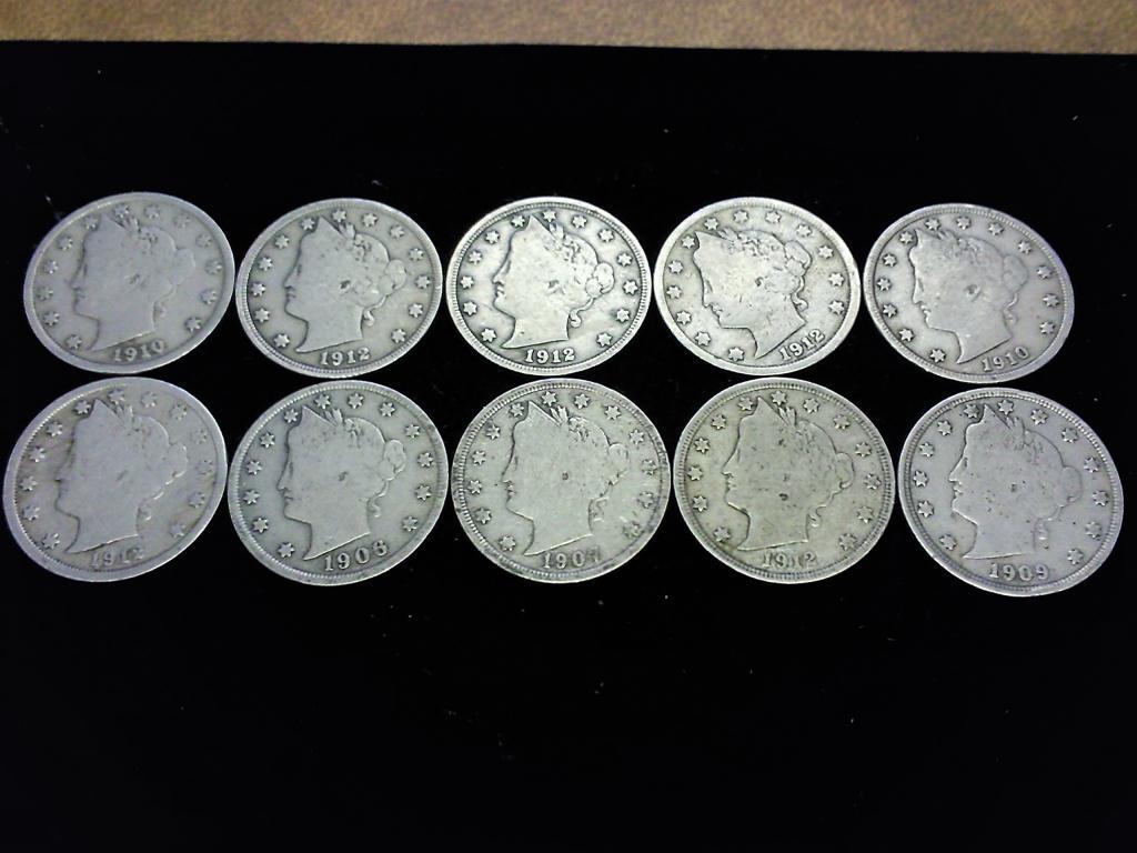 10 ASSORTED LIBERTY "V" NICKELS ALL (VERY GOODS)