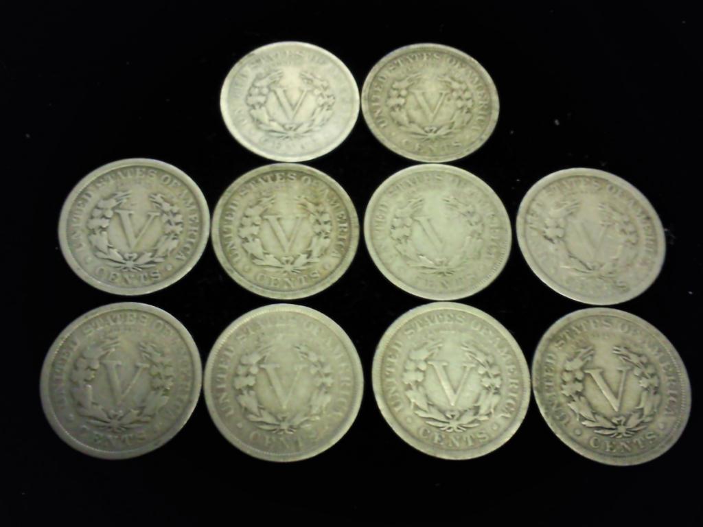 10 ASSORTED LIBERTY "V" NICKELS ALL (VERY GOODS)