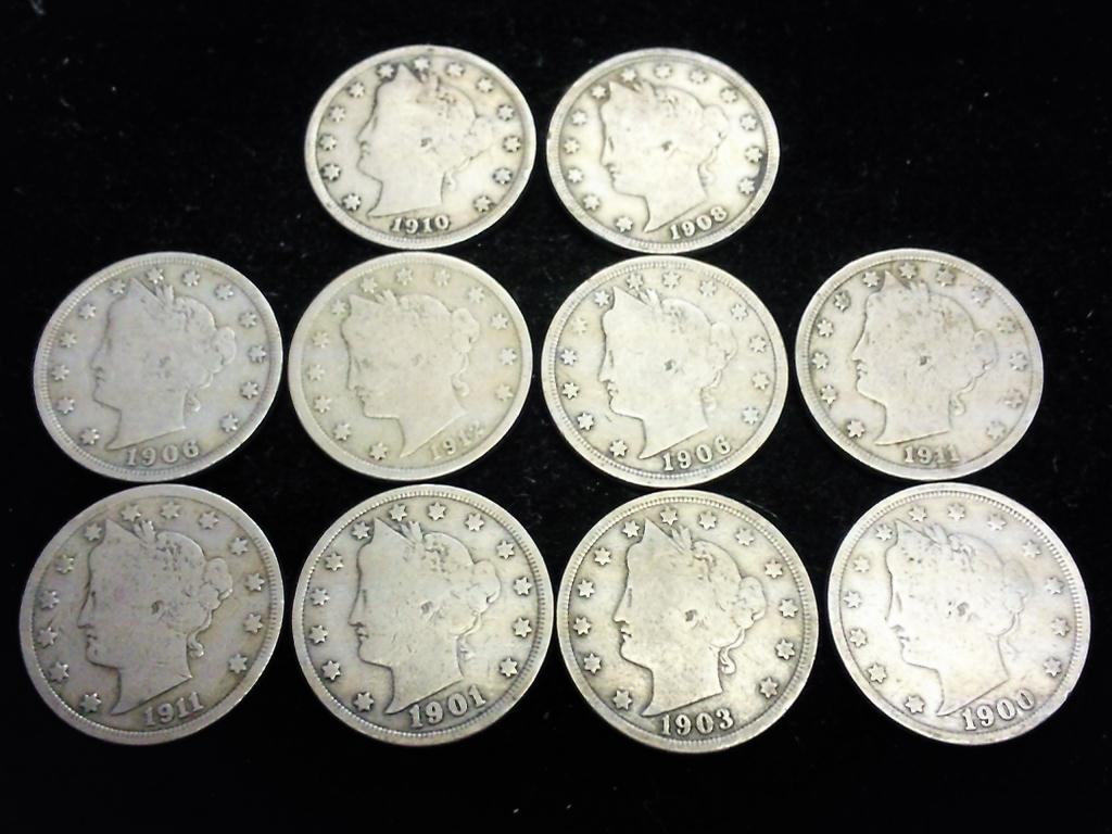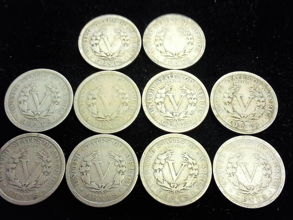 10 ASSORTED LIBERTY "V" NICKELS (GOOD-VERY GOOD)