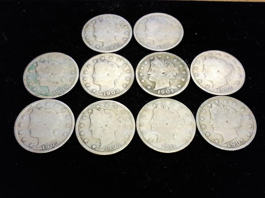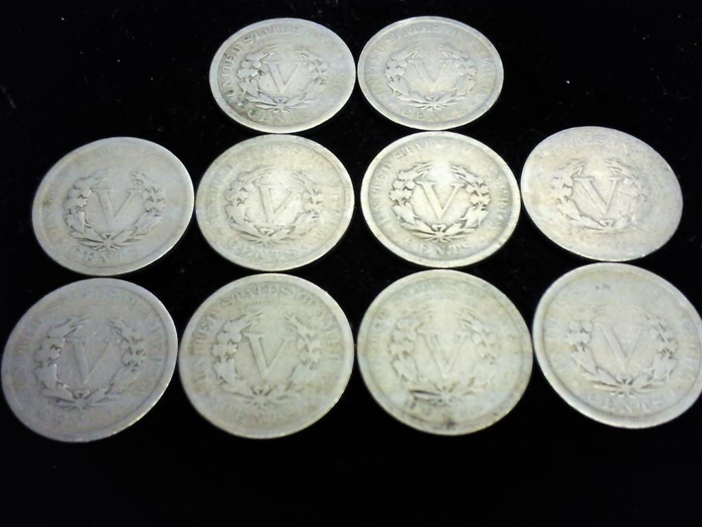 10 ASSORTED LIBERTY "V" NICKELS