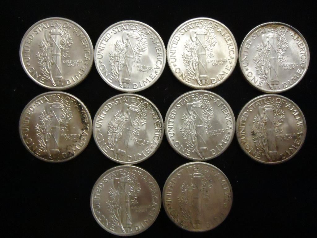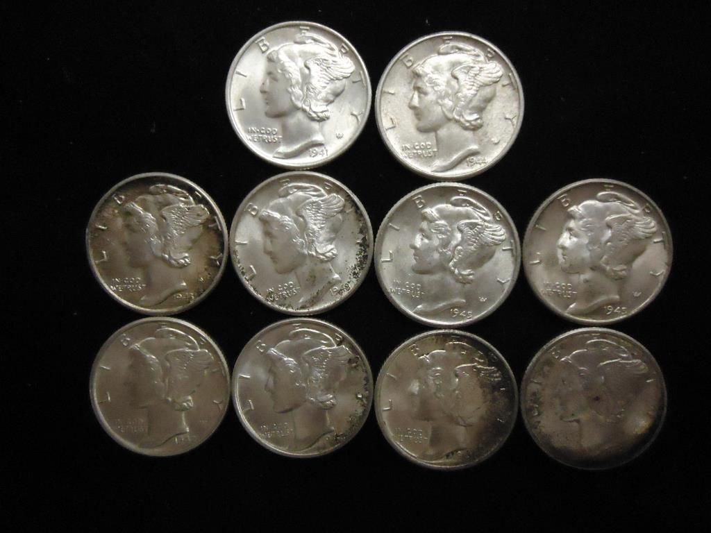 10 ASSORTED MERCURY DIMES (EF-UNC)