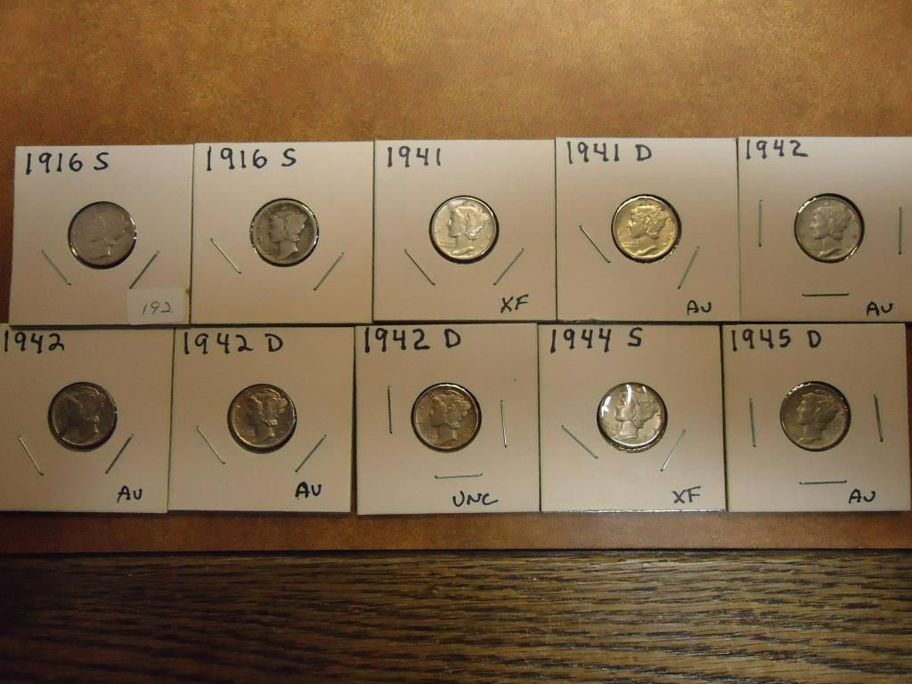 2-1916-S, 1941, 1941-D AU, 2-1942 AU, 1942-D AU, 1942-D UNC, 1944-S AND 1945-D AU