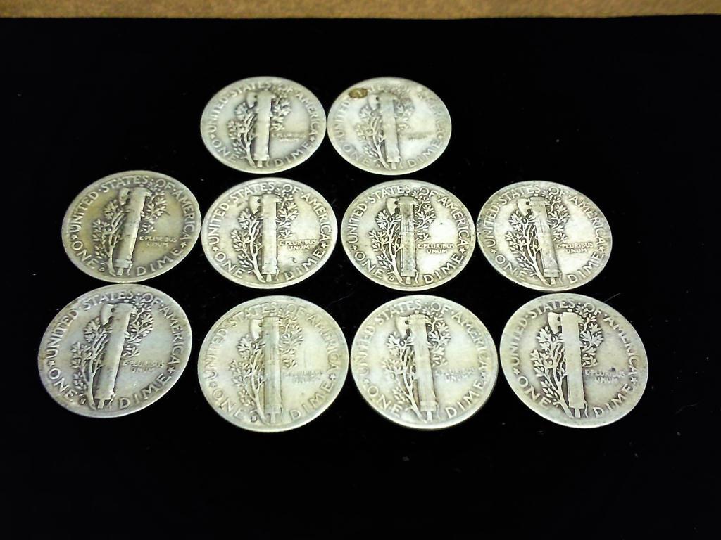 10-ASSORTED MERCURY DIMES