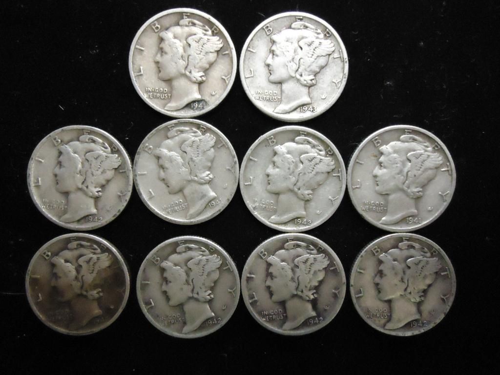 10 ASSORTED MERCURY DIMES