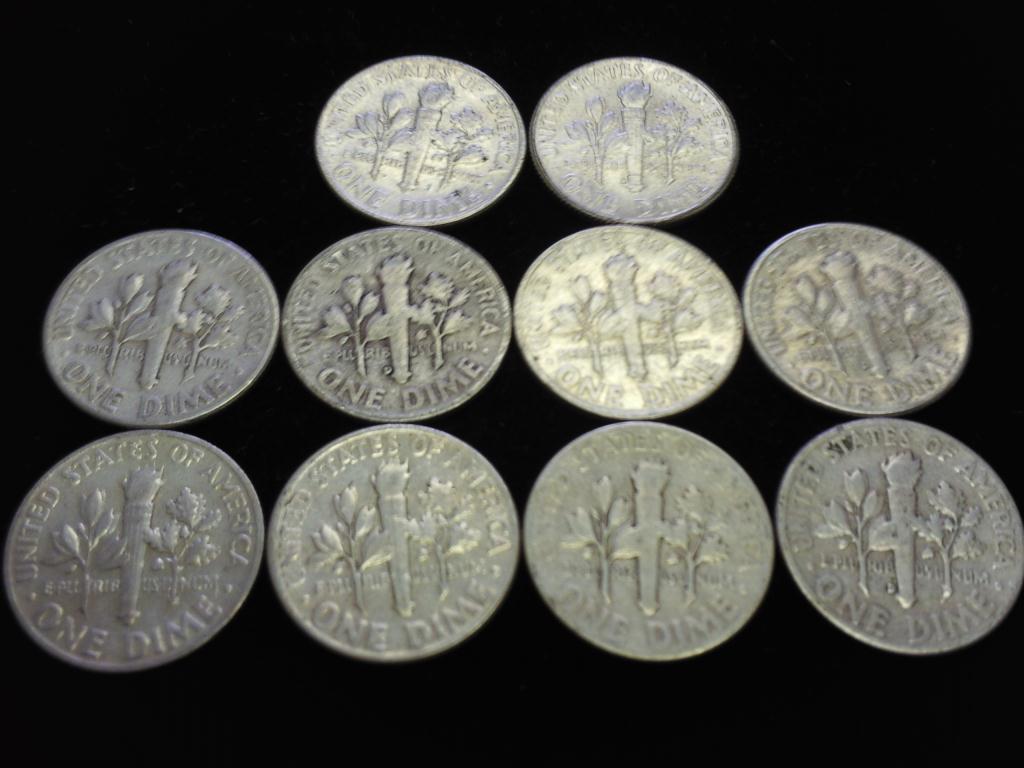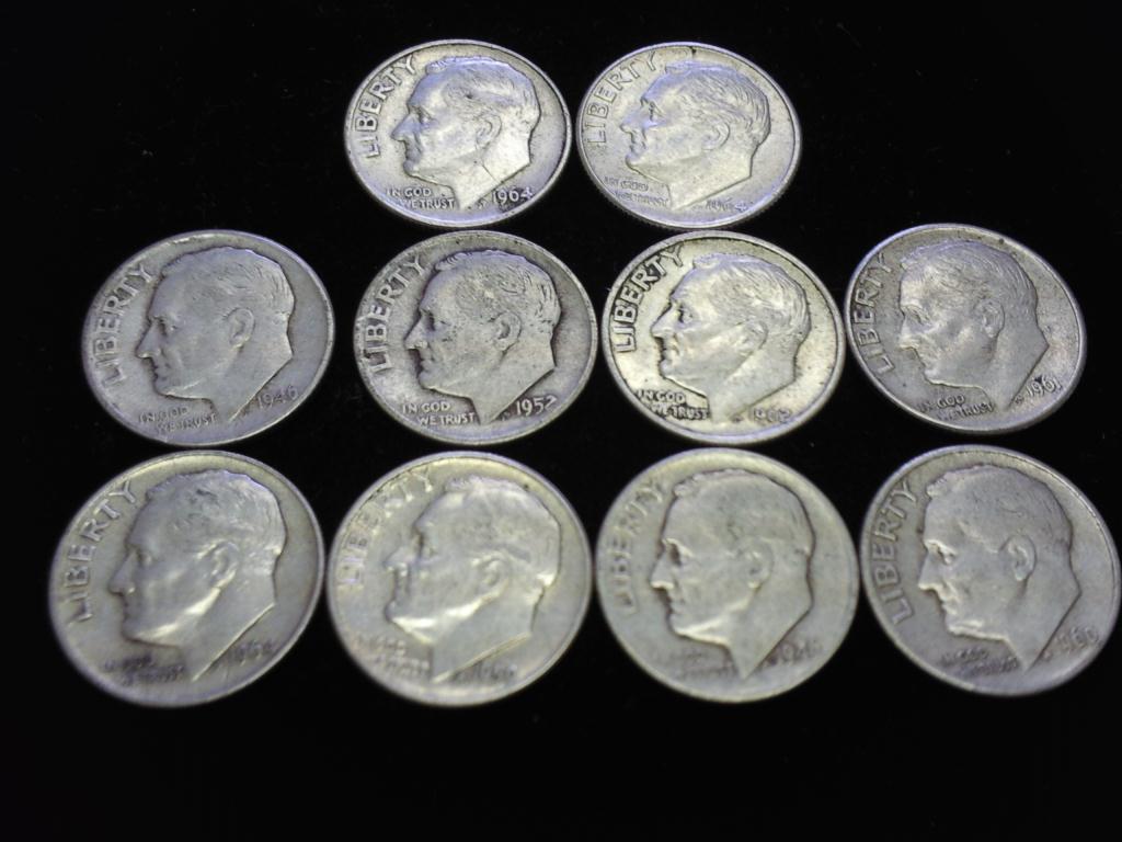 10 ASSORTED ROOSEVELT DIMES SILVER