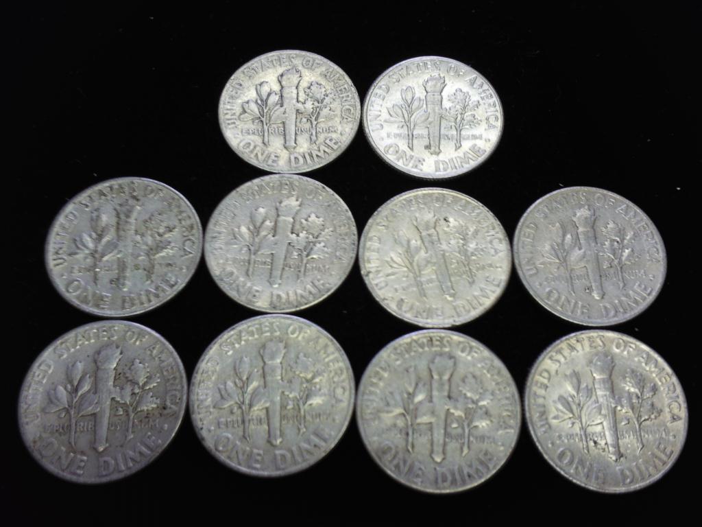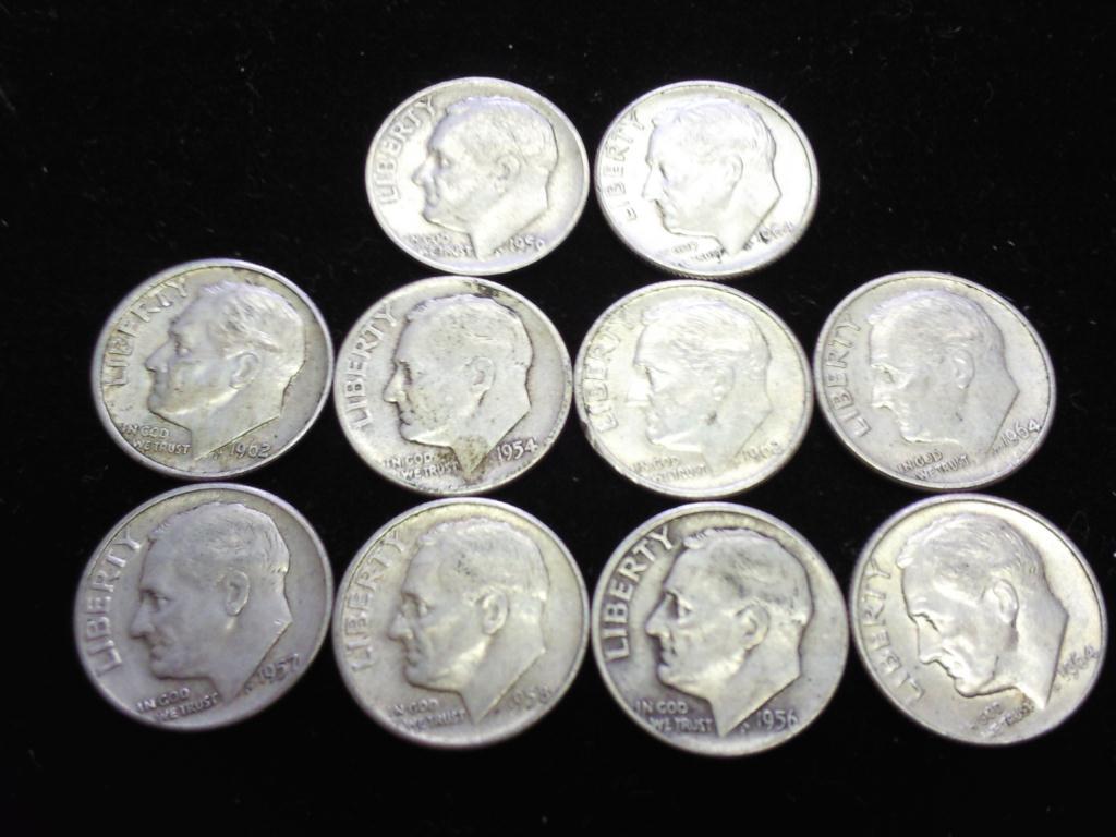 10 ASSORTED ROOSEVELT DIMES SILVER