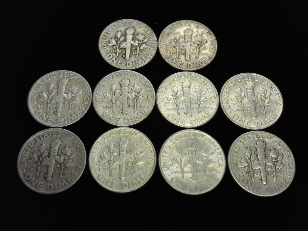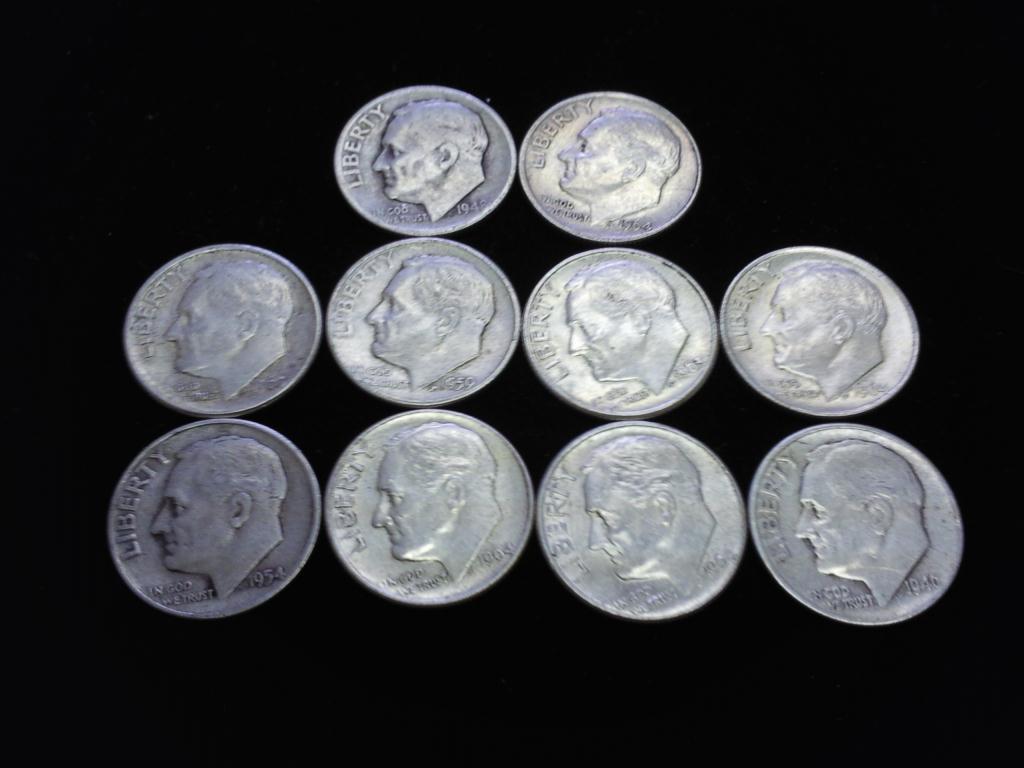 10 ASSORTED ROOSEVELT DIMES SILVER