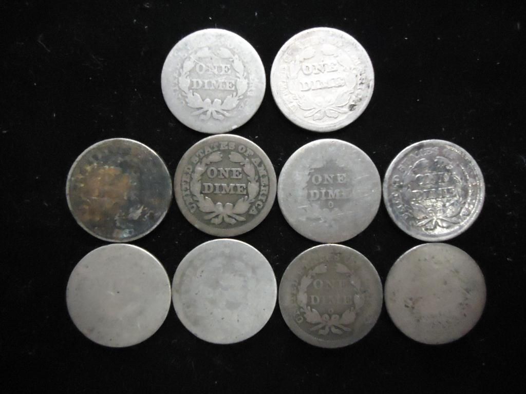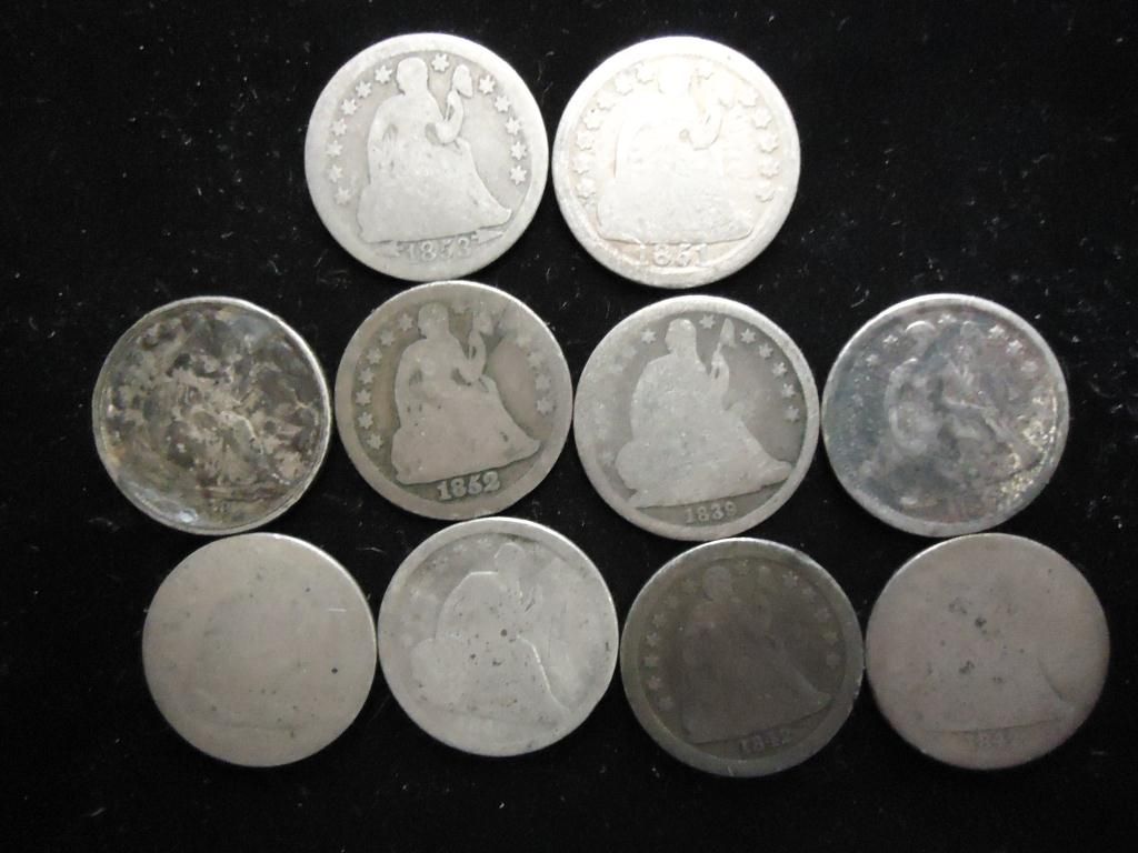 10 ASSORTED SEATED LIBERTY DIMES