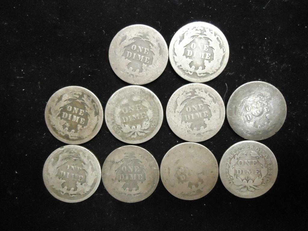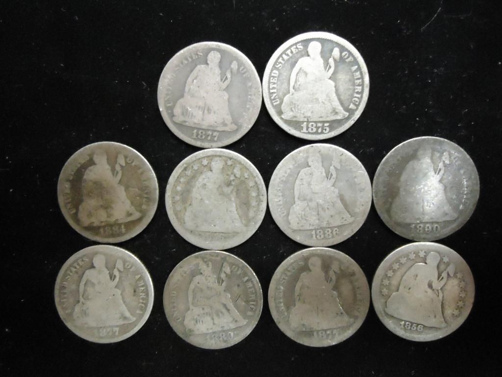 10 ASSORTED SEATED LIBERTY DIMES