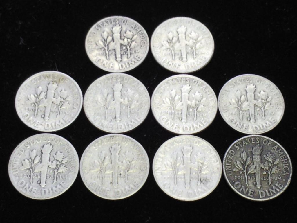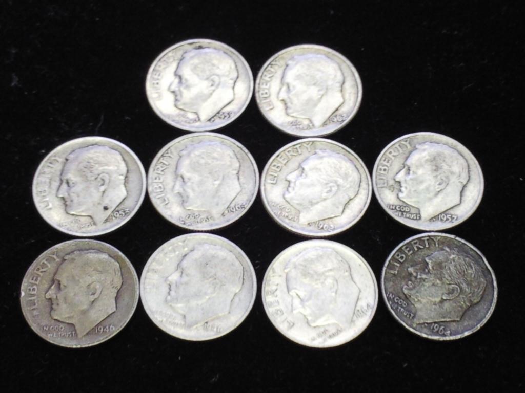 10 ASSORTED SILVER ROOSEVELT DIMES