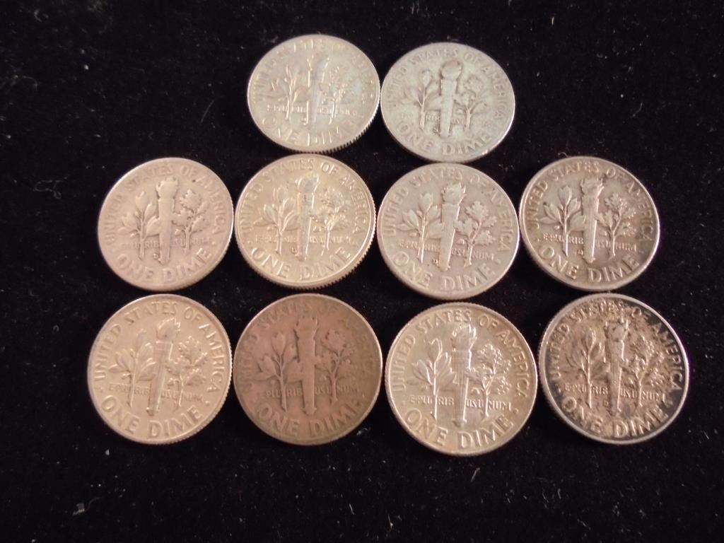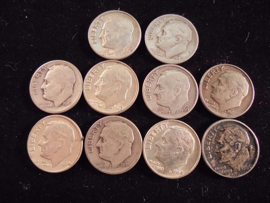10 ASSORTED SILVER ROOSEVELT DIMES
