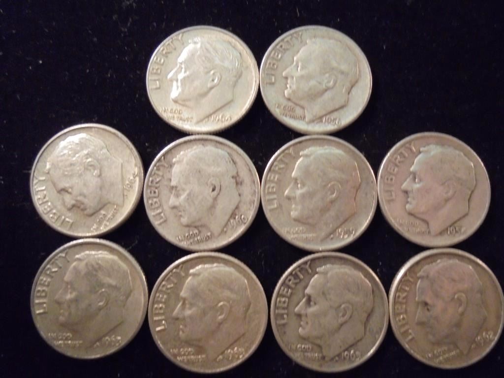 10 ASSORTED SILVER ROOSEVELT DIMES