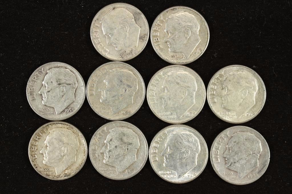 10 ASSORTED SILVER ROOSEVELT DIMES