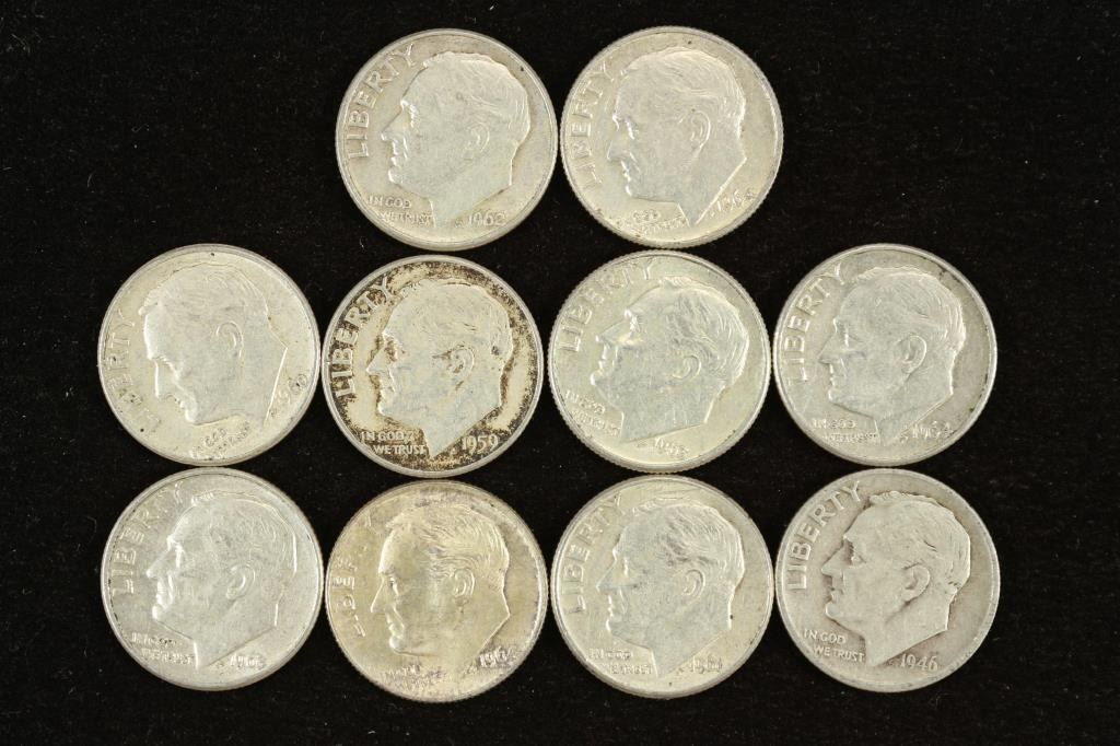 10 ASSORTED SILVER ROOSEVELT DIMES