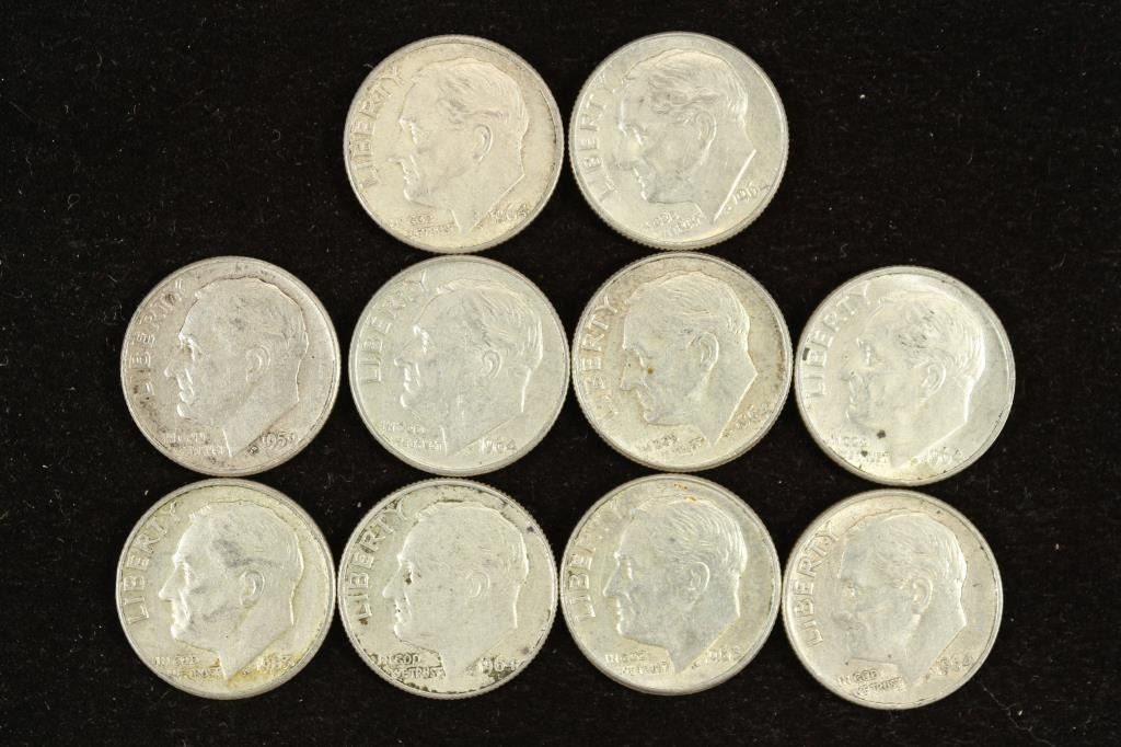 10 ASSORTED SILVER ROOSEVELT DIMES