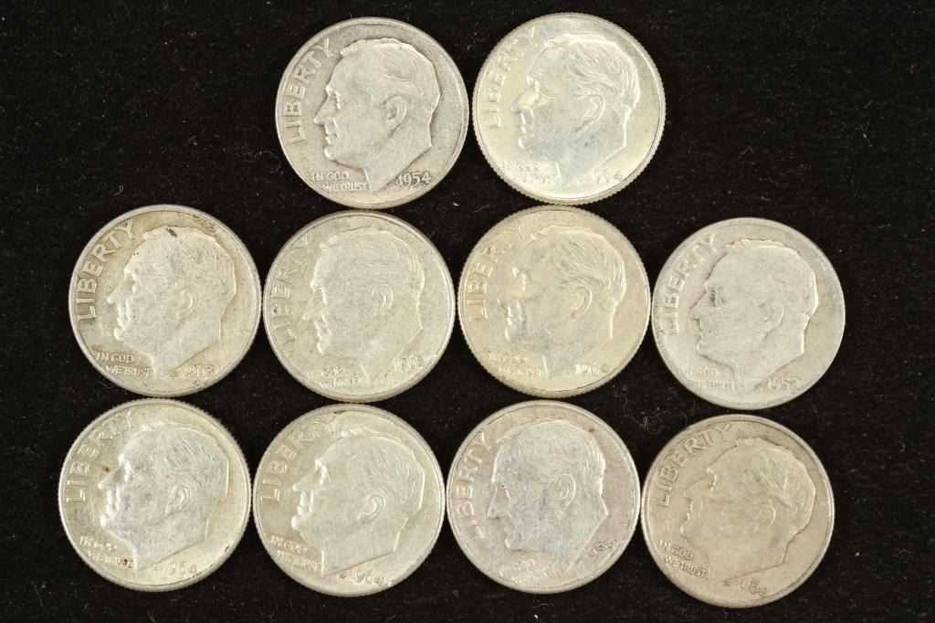 10 ASSORTED SILVER ROOSEVELT DIMES
