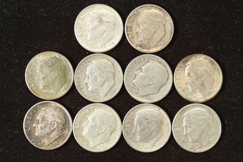 10 ASSORTED SILVER ROOSEVELT DIMES