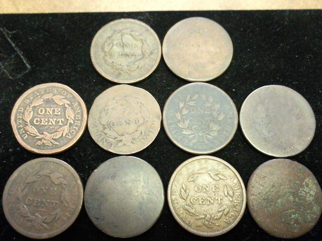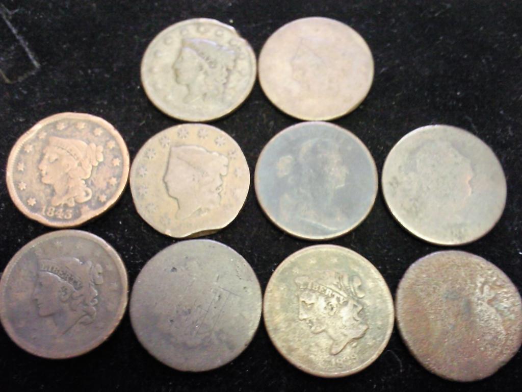 10 ASSORTED US LARGE CENTS VARIOUS PROBLEMS