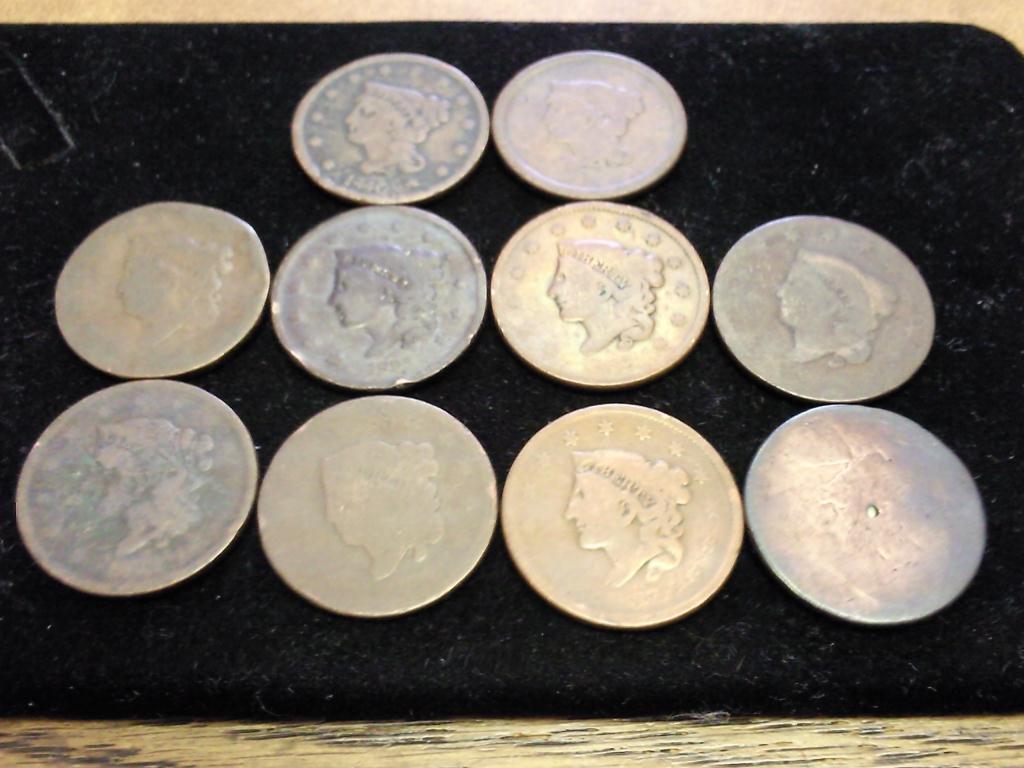 10 ASSORTED US LARGE CENTS VARIOUS PROBLEMS