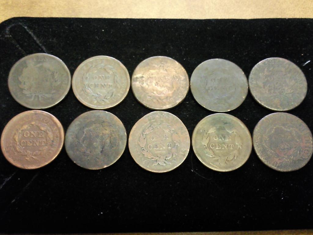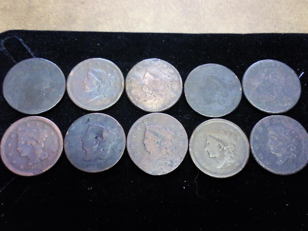 10 ASSORTED US LARGE CENTS VARIOUS PROBLEMS