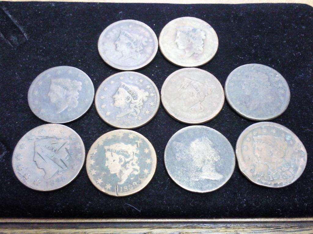 10 ASSORTED US LARGE CENTS VARIOUS PROBLEMS