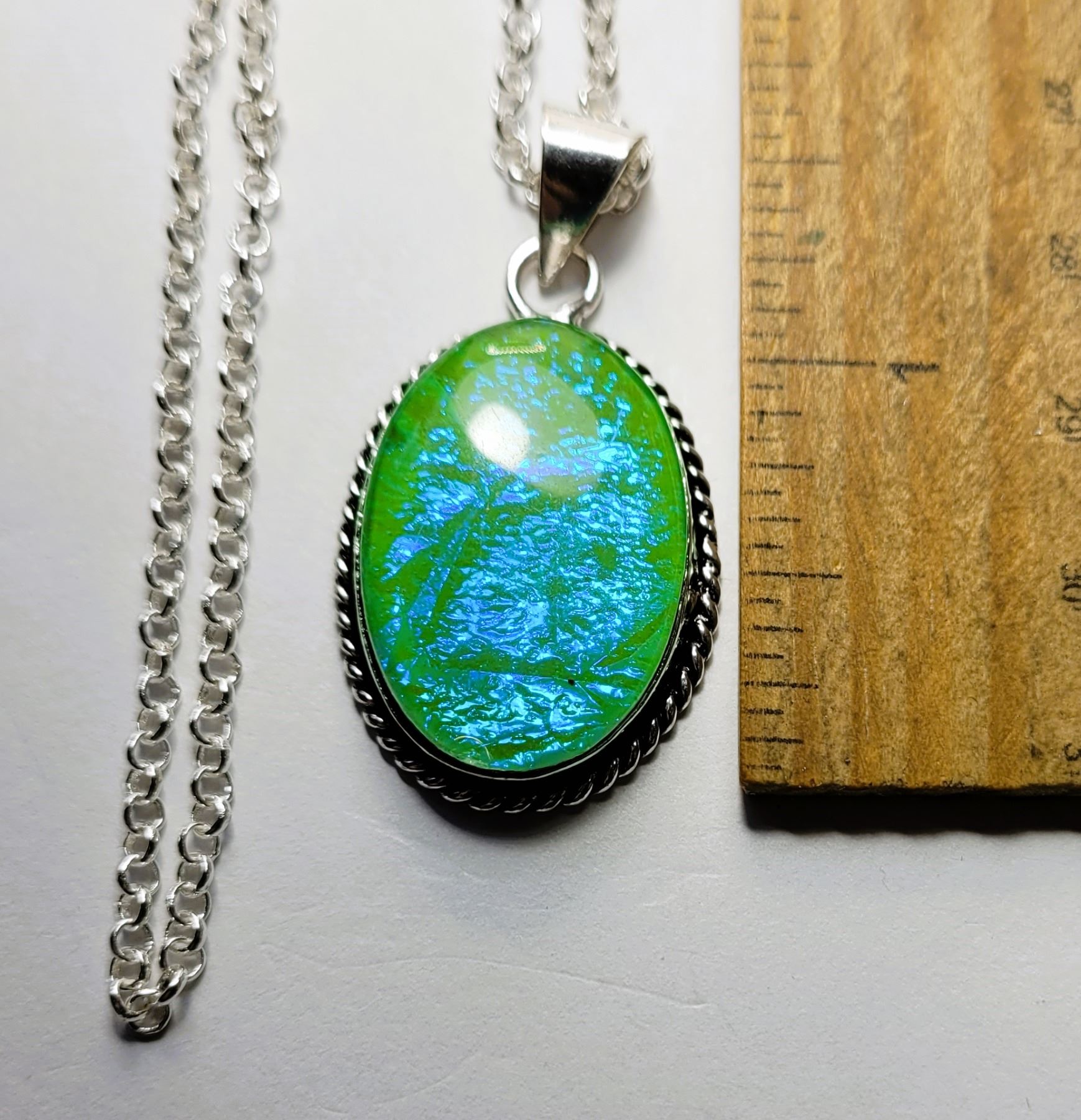 WITH ROPE DESIGN SETTING, STAMPED 925 SILVER PLATE ON AN "O" RING 18" CHAIN. JEWELRY