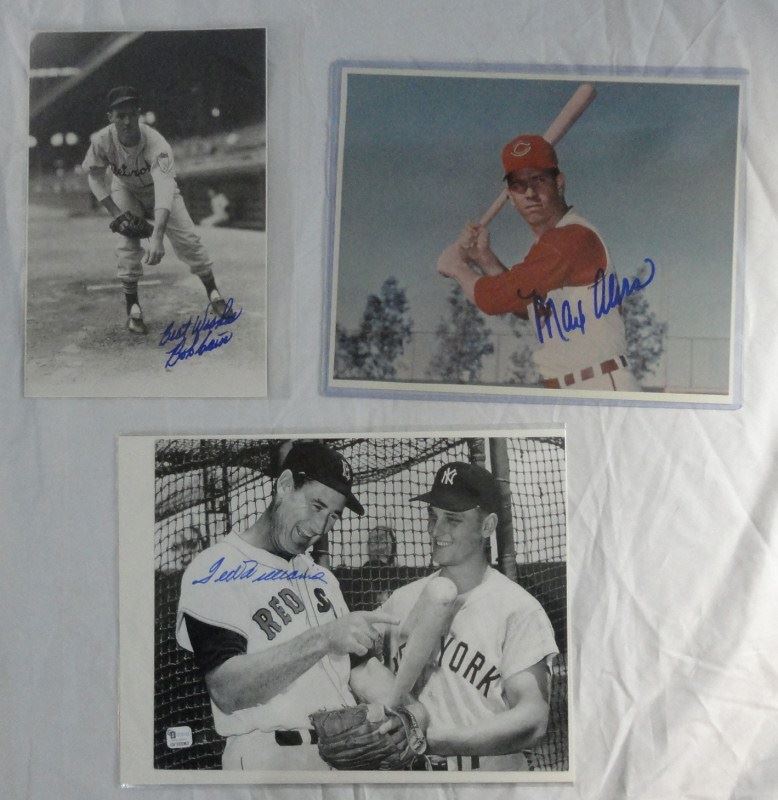 RICK FERRELL, RALPH KINER, ROBIN ROBERTS, BOB FELLER, BILLY WILLIAMS, BOB CAIN, MAX ALVIS, MOSTLY HOFers, MOSTLY 8 x 10, NO COA's, EST $600-$650