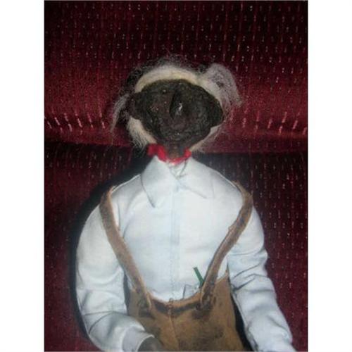 10" Apple Head Man on Stand. He's very unusual. I don't know anything about him. His torso is cotton stuffed. He has two black beads for his eyes. He's well made. Doll comes from a smoke free environment. Buyer to pay $10 for shipping, handling, and insurance. Thanks for viewing.