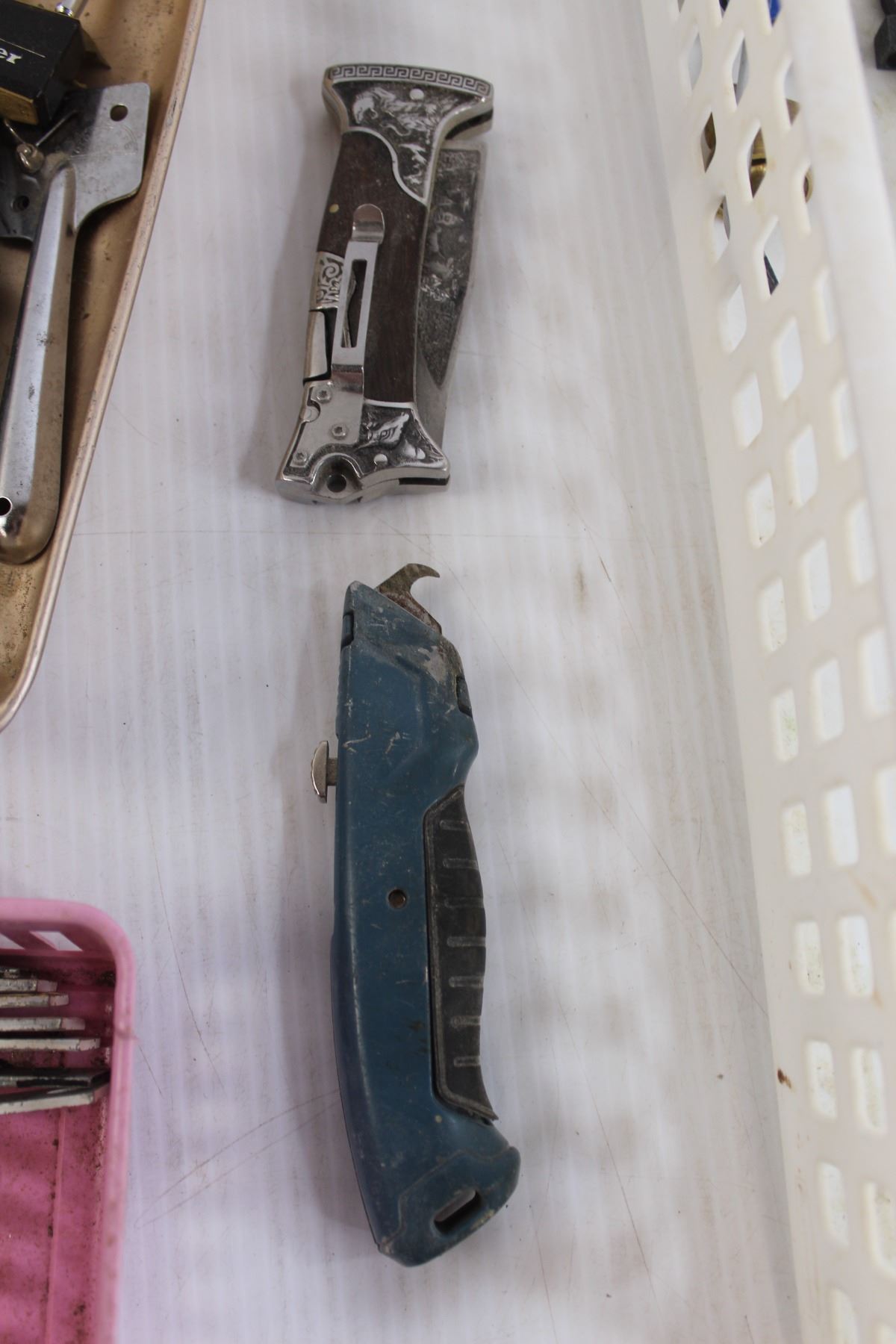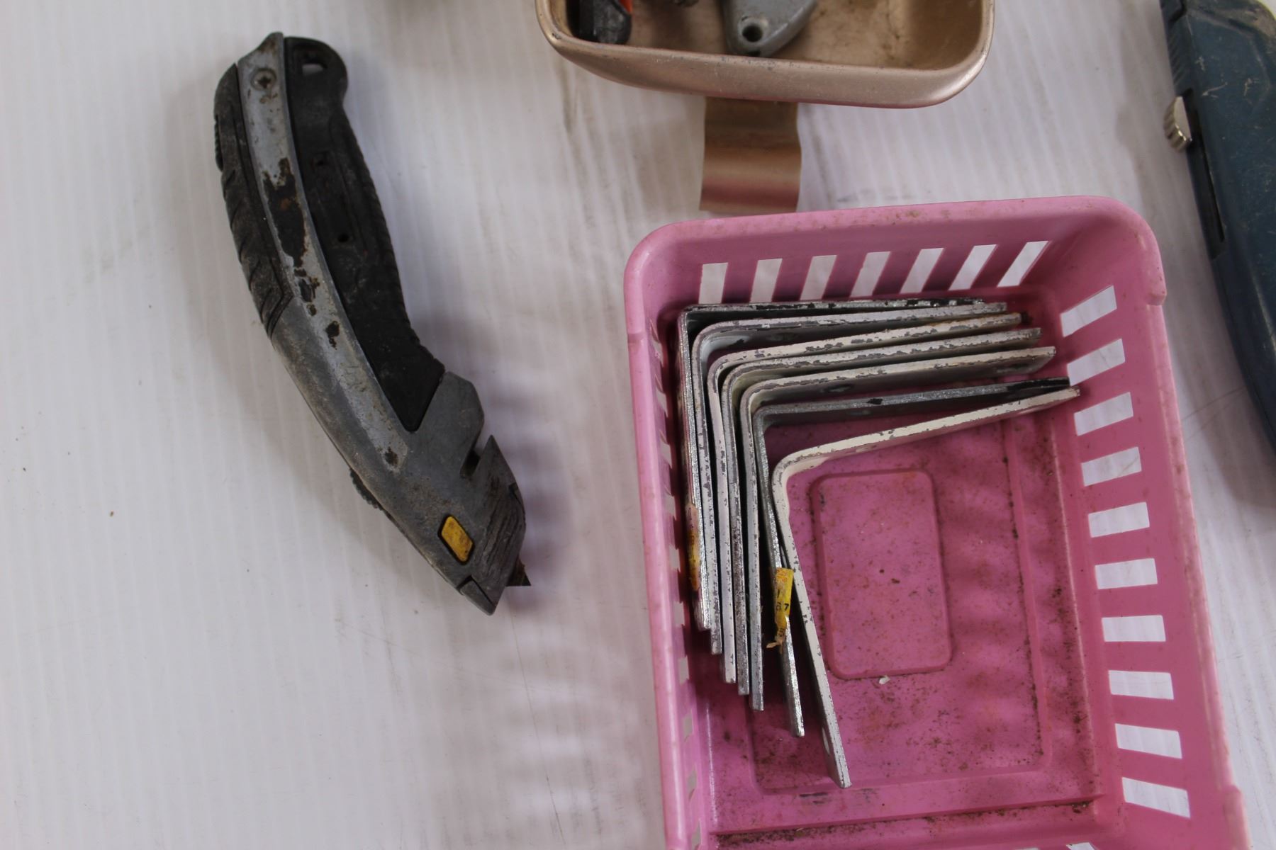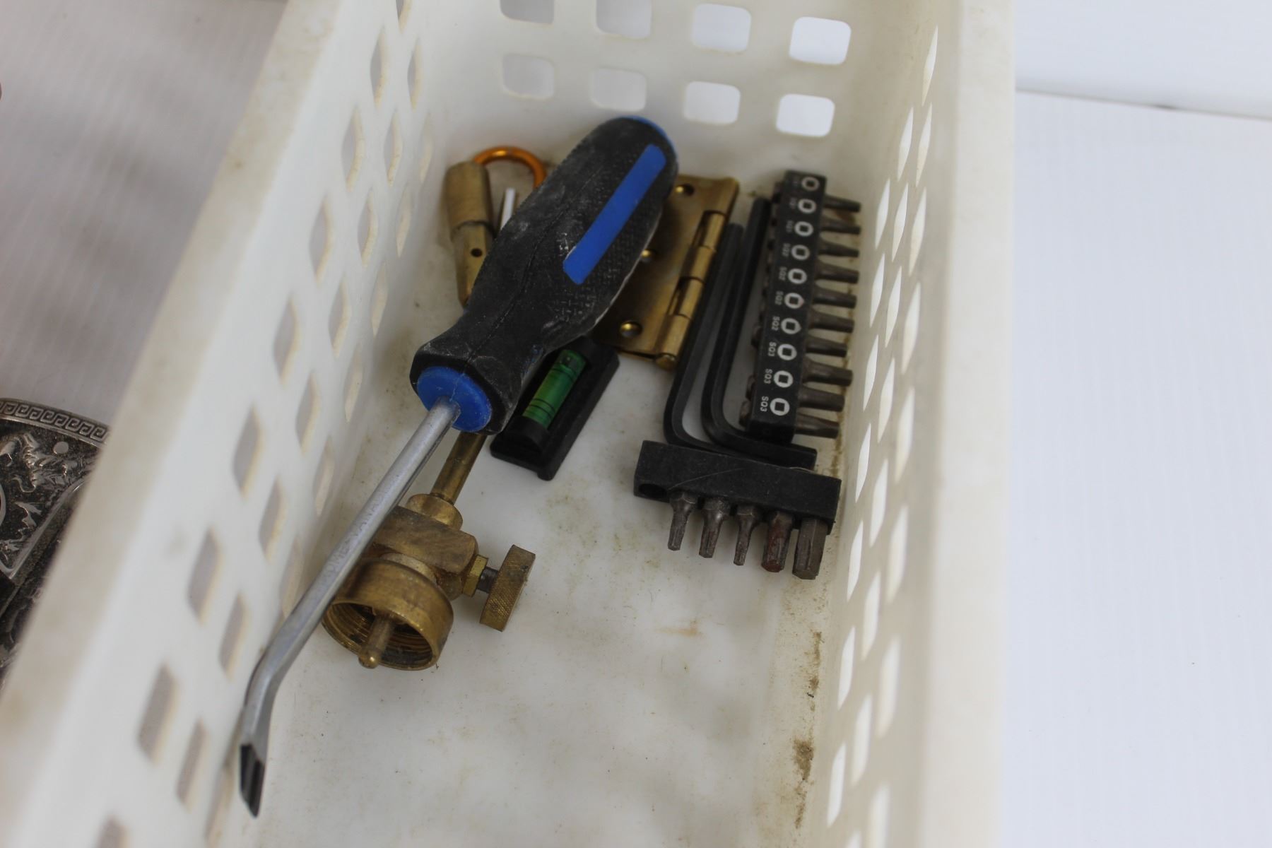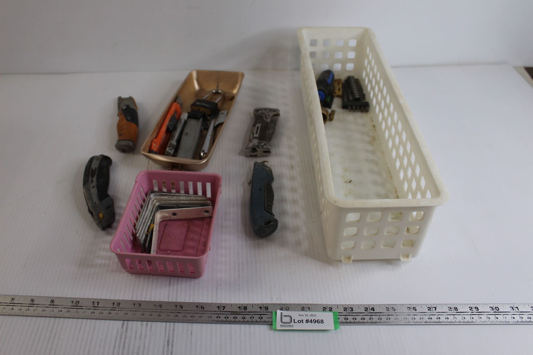 (10+) Assorted Bits, (7) Brackets, Assorted Tools, Misc.