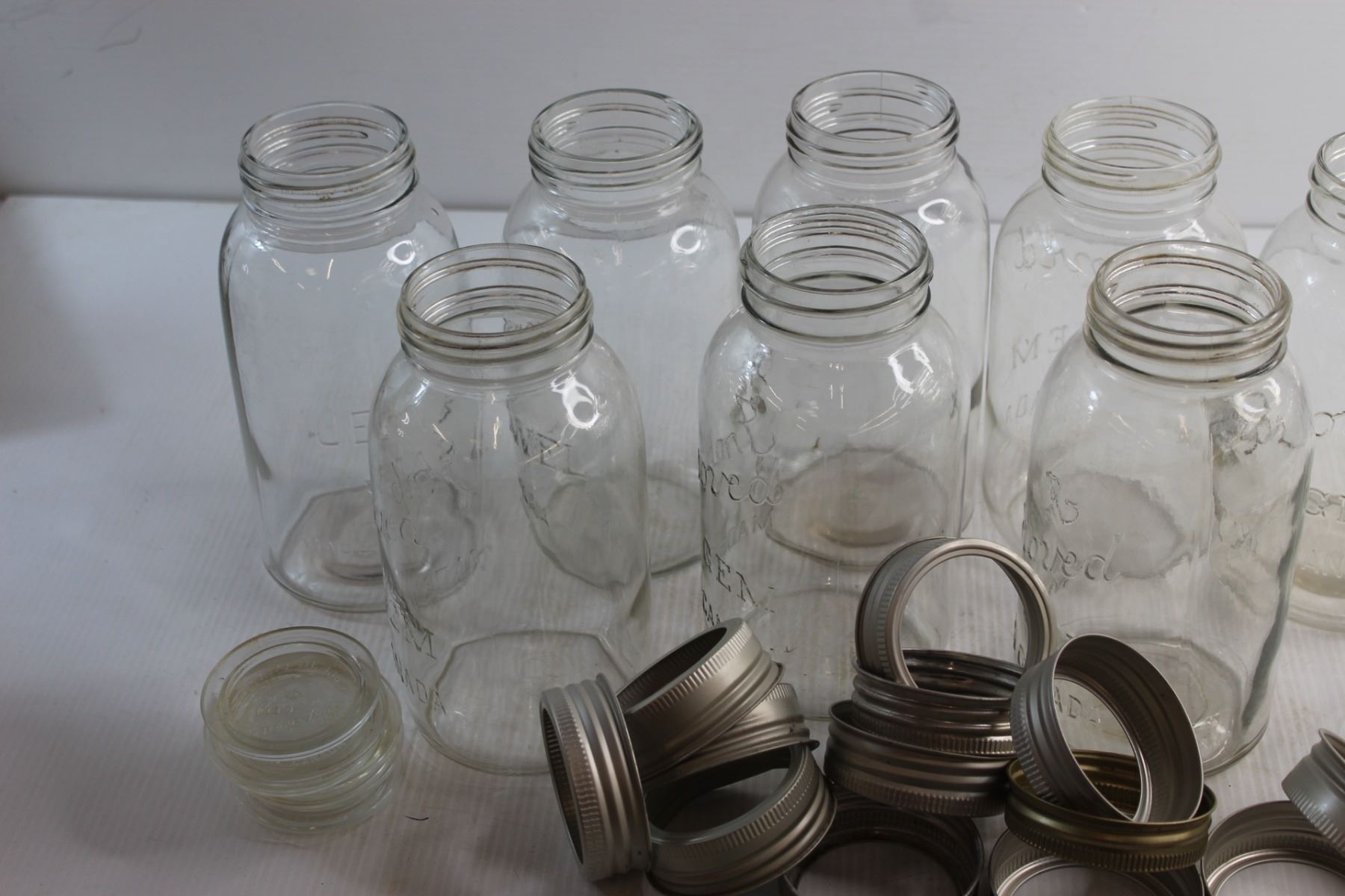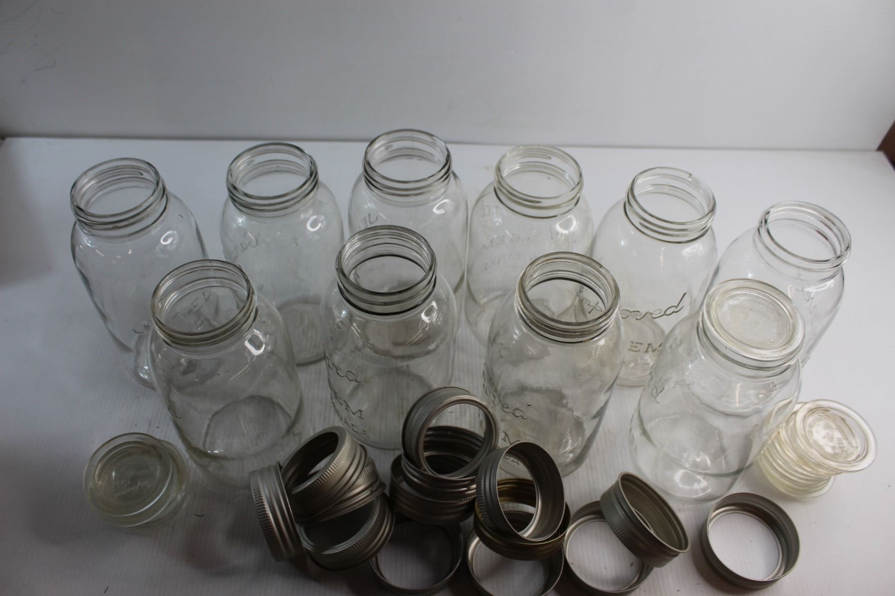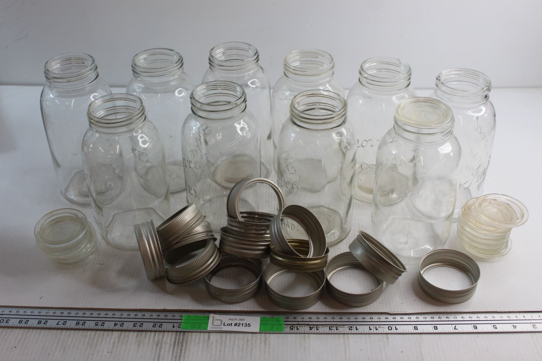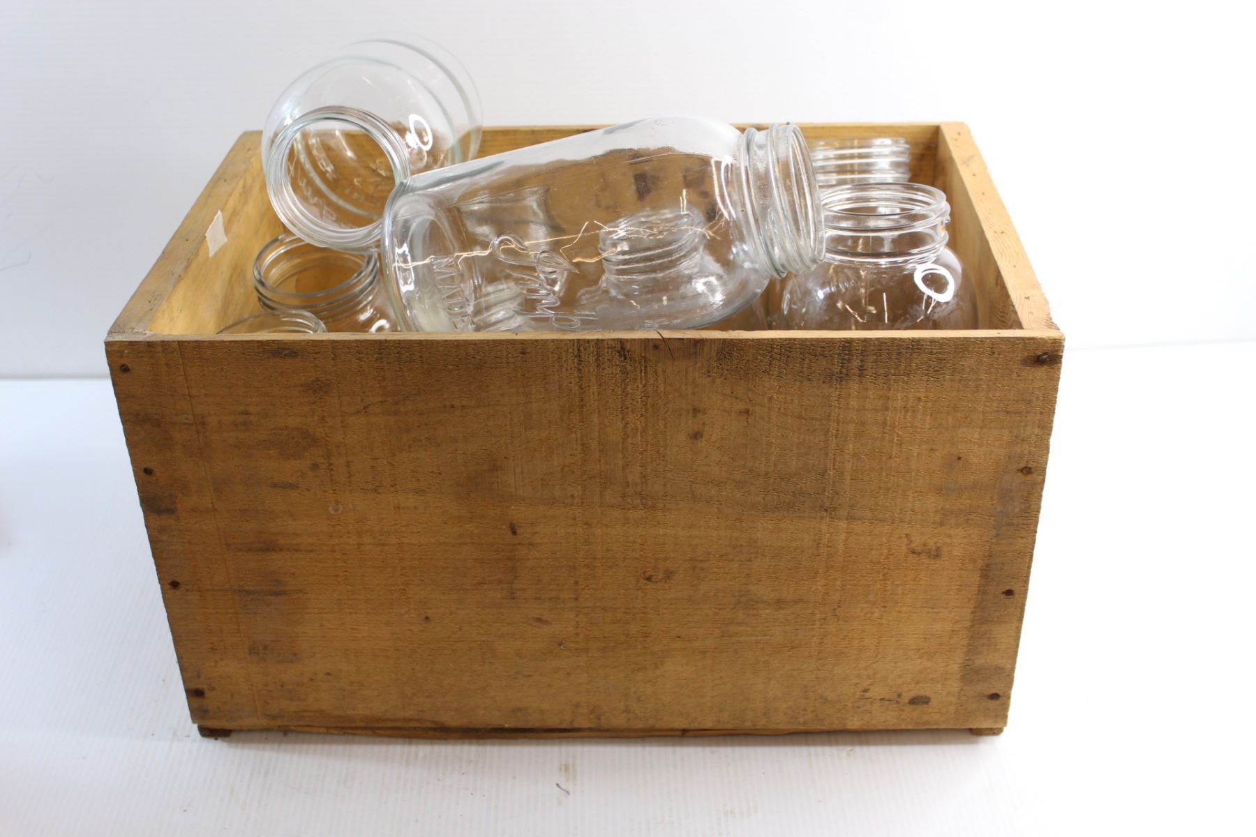 *(10) Assorted Glass Sealer Jars and Wooden Crate