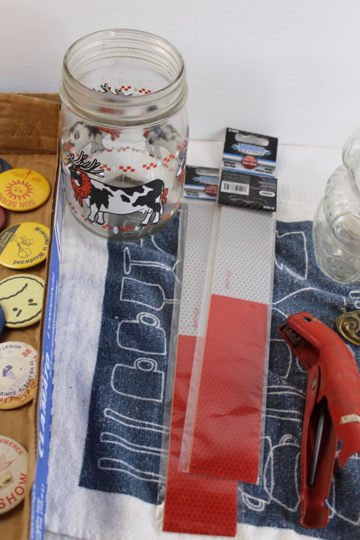 (10+) Assorted Pins, Red/Silver Reflective Tape, Misc