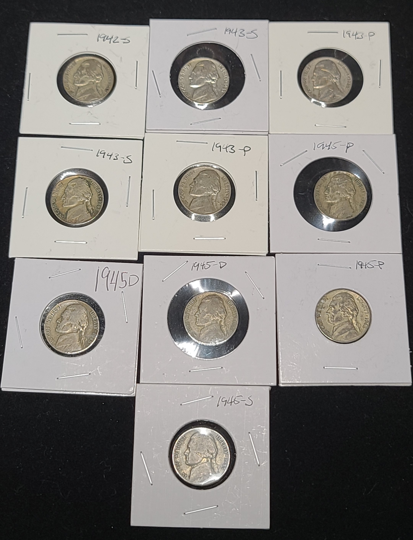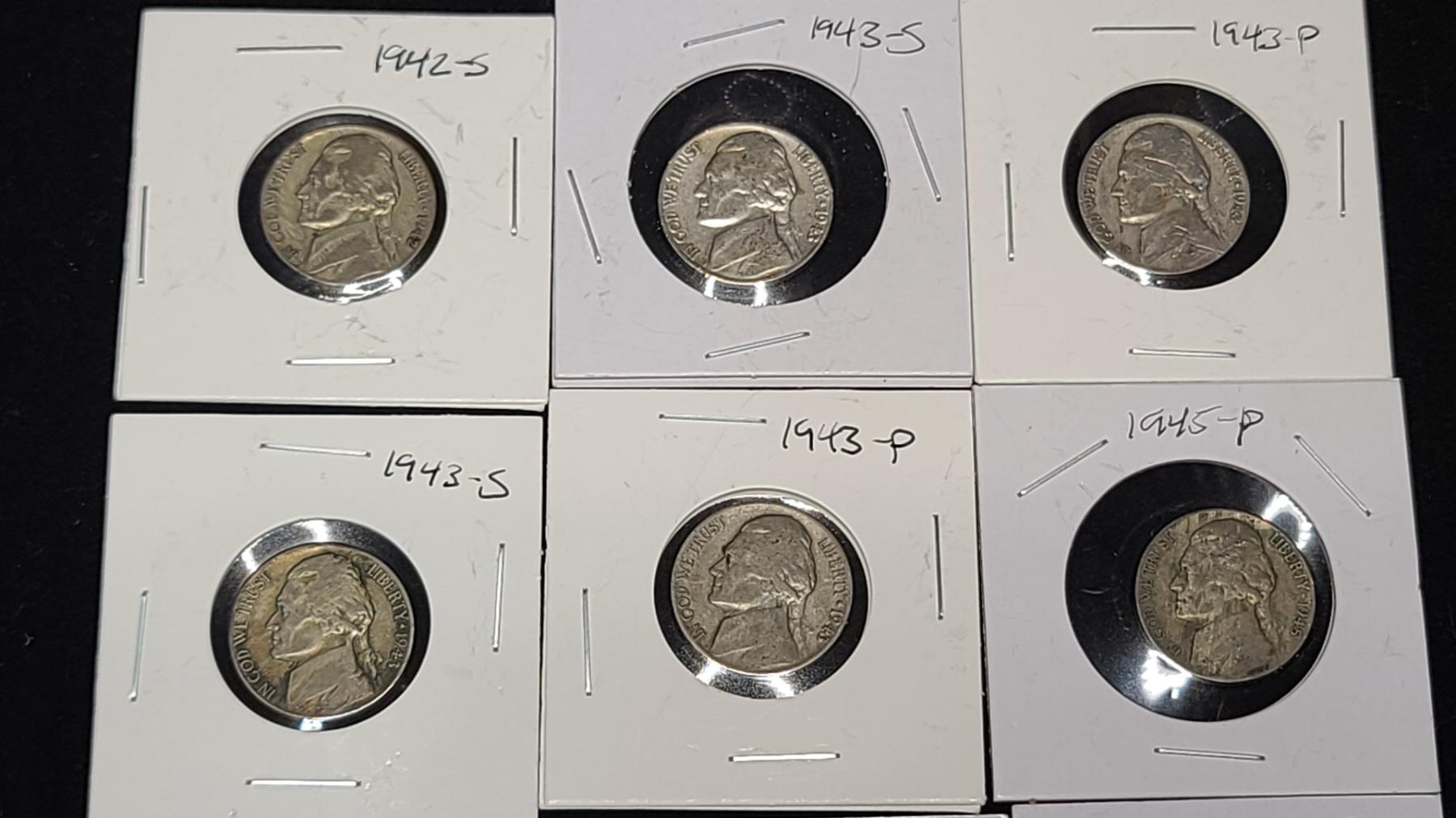 (10) Assorted Years/Mint Marks Jefferson War-Time Nickels - Face Value: $0.50