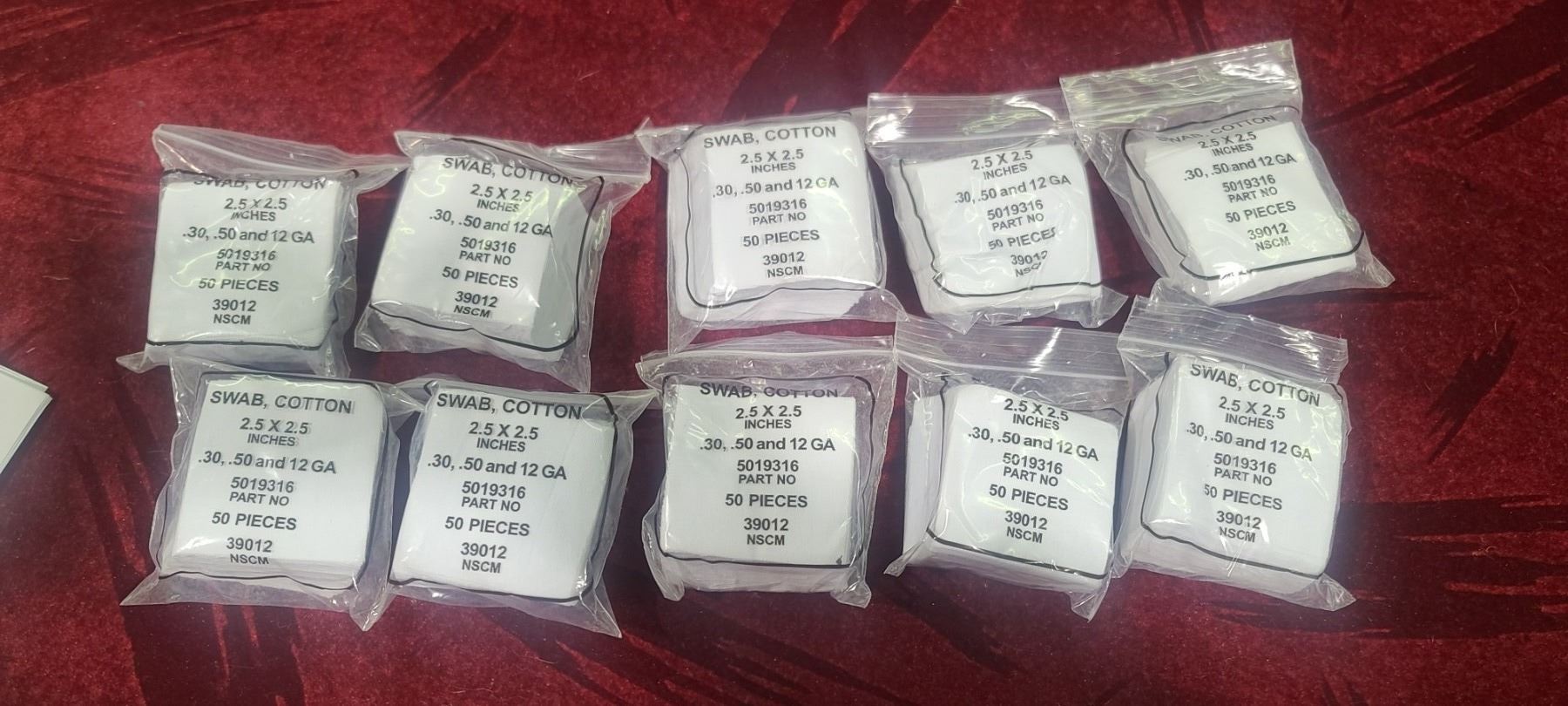 10 BAGS OF 50 (TOTAL 500) COTTON SWABS .30, .50CAL , 12GA