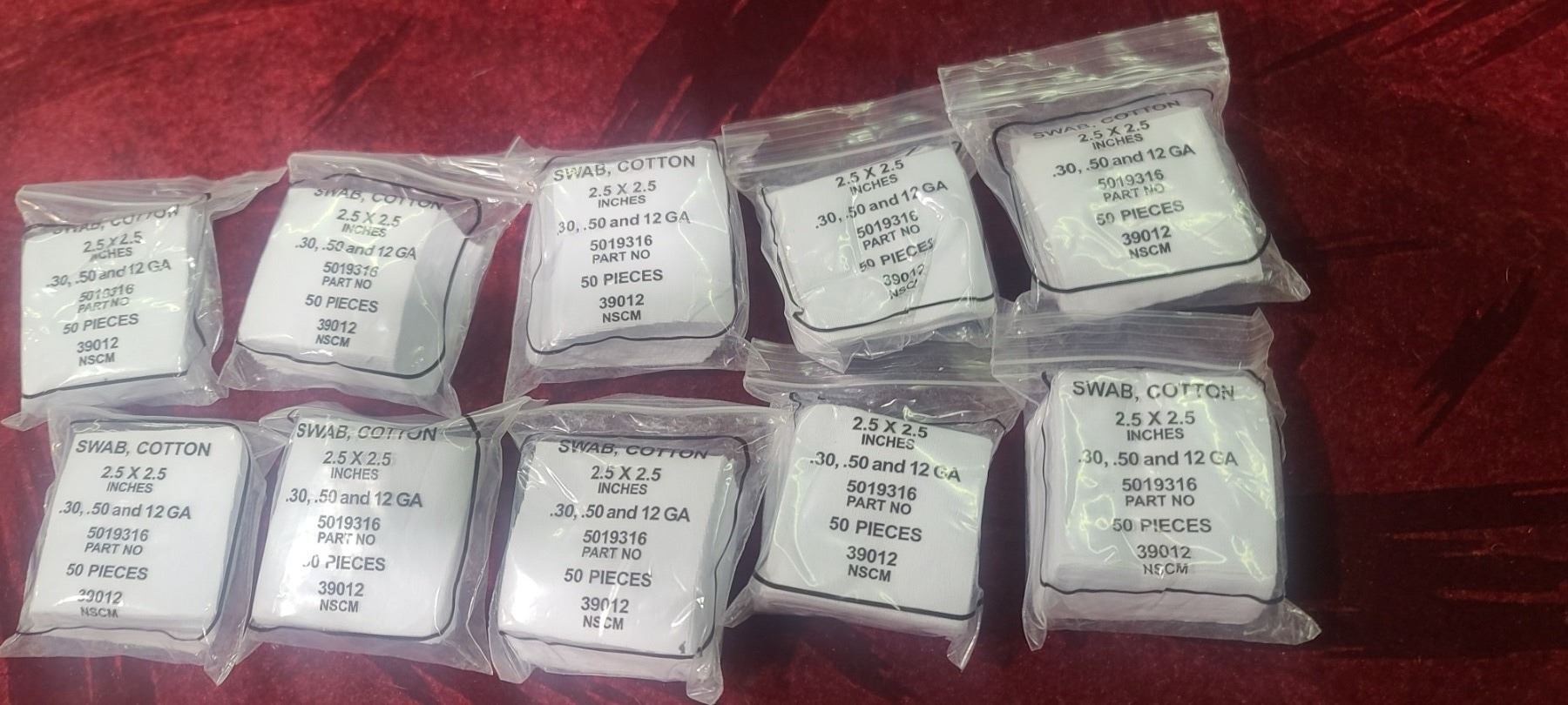 10 BAGS OF 50 (TOTAL 500) COTTON SWABS .30, .50CAL , 12GA
