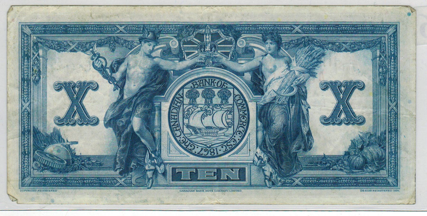 $10 BANKNOTE (CANADIAN BANK OF COMMERCE) *1935 ,SER. # A009265*